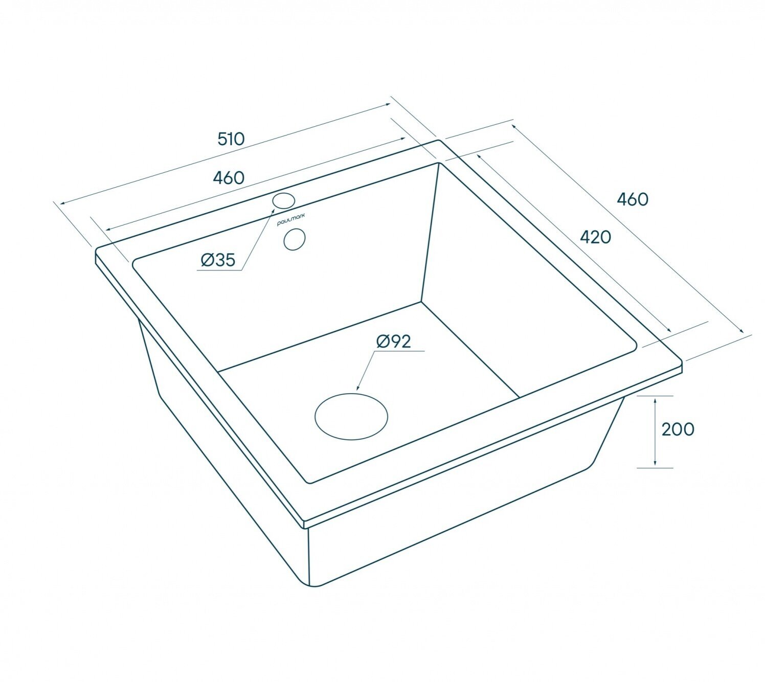 диаметр слива: 9.2 см; без готовых отверстий под смеситель; оснащение: сифон; комплектация: мойка, сифон, гарантийный талон, инструкция
