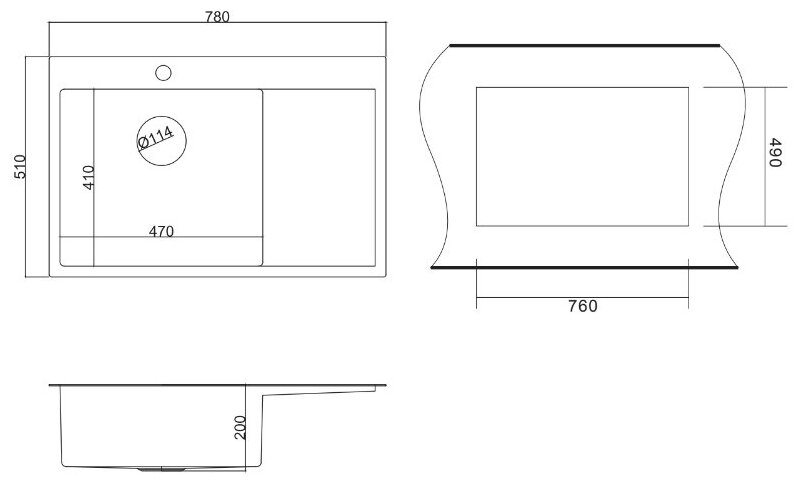 Комплект крепежей для врезного монтажа, Отводная арматура (слив-перелив), Сифон бутылочного типа с подключением посудомоечной машины (ПММ).