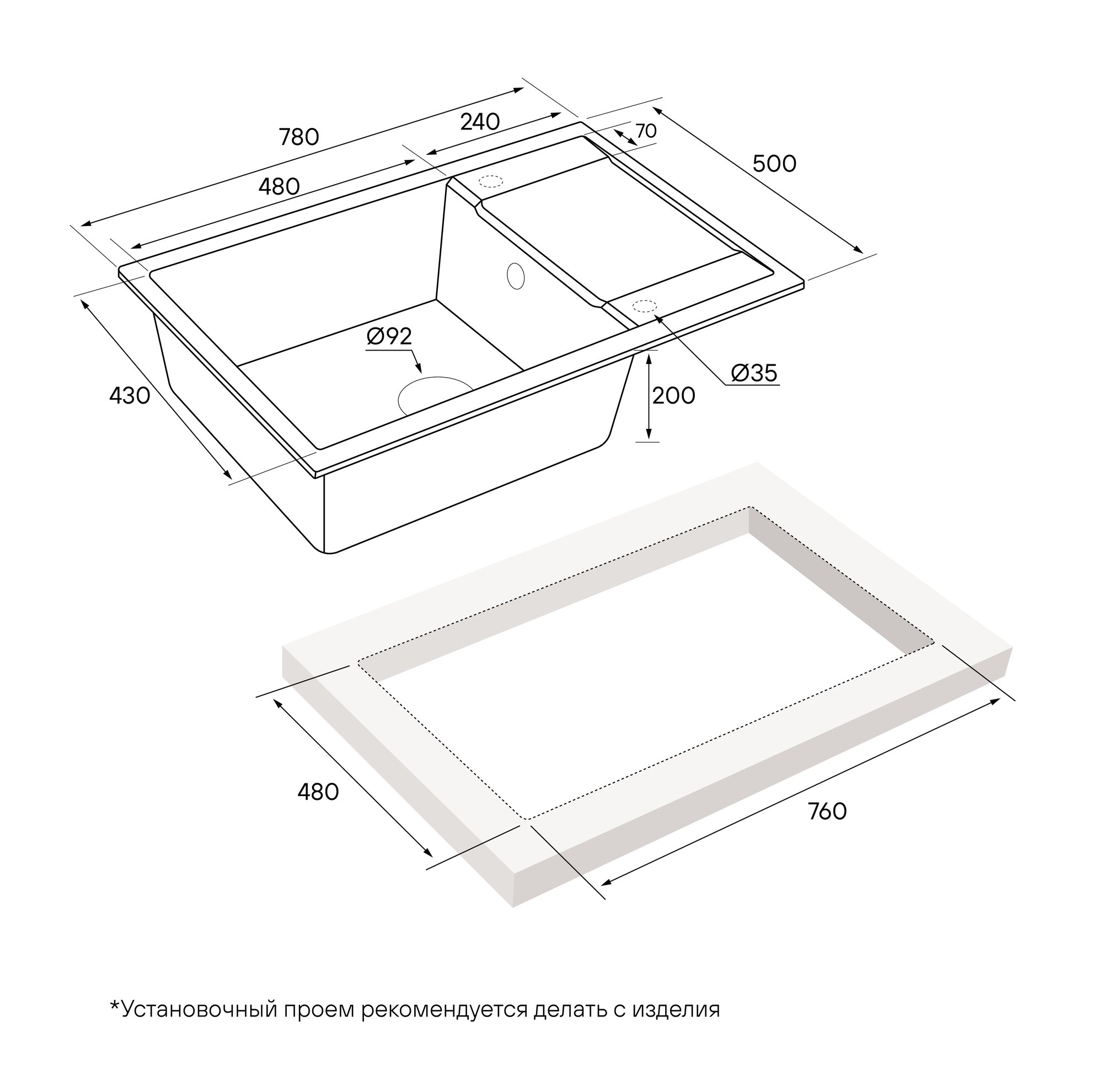 корзинчатый вентиль, отверстие под смеситель, сливная арматура