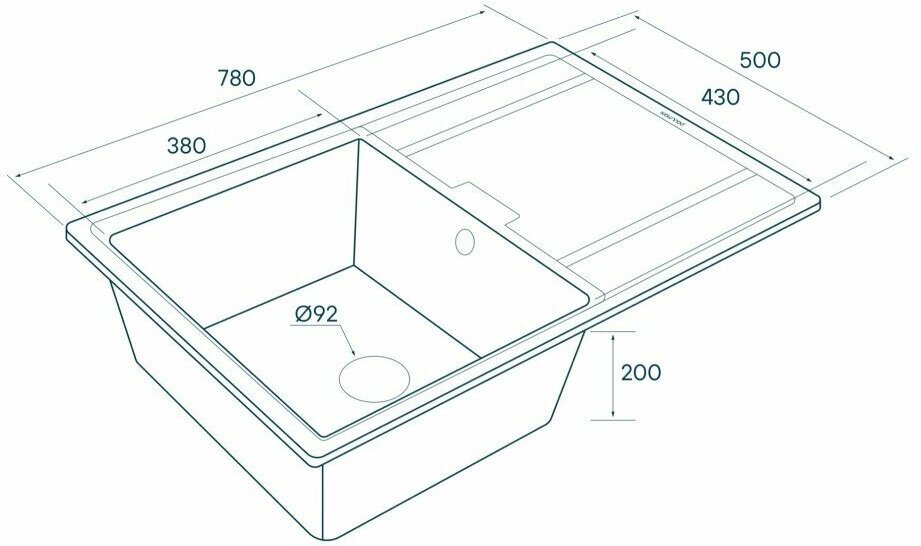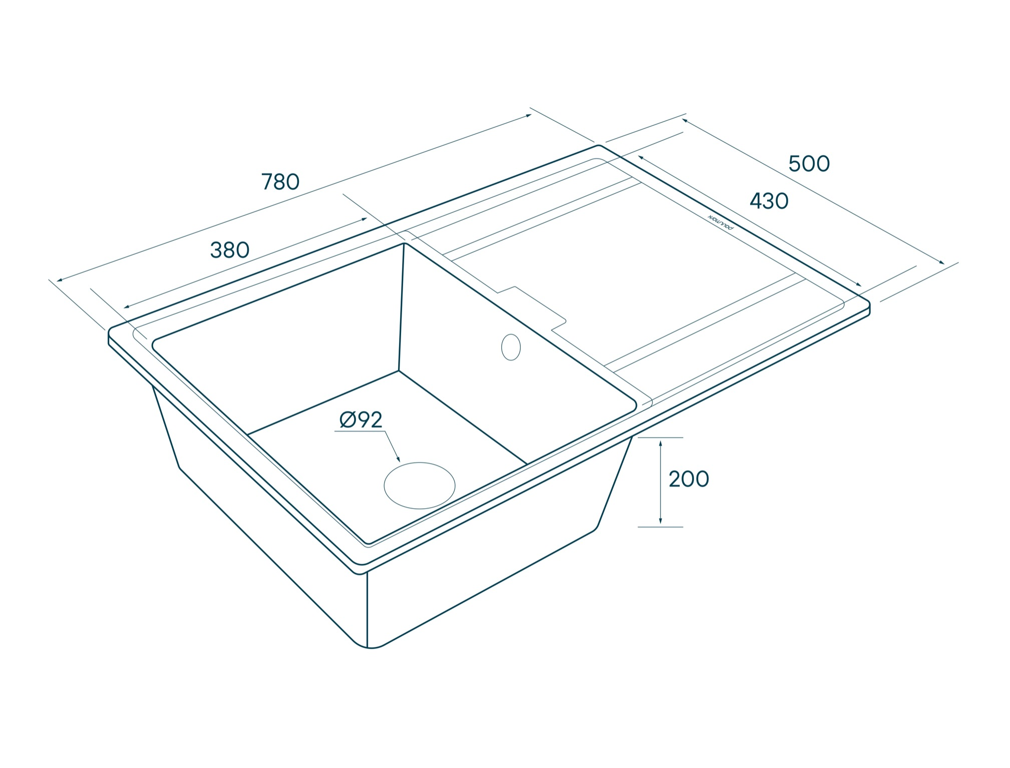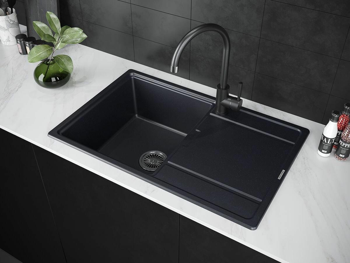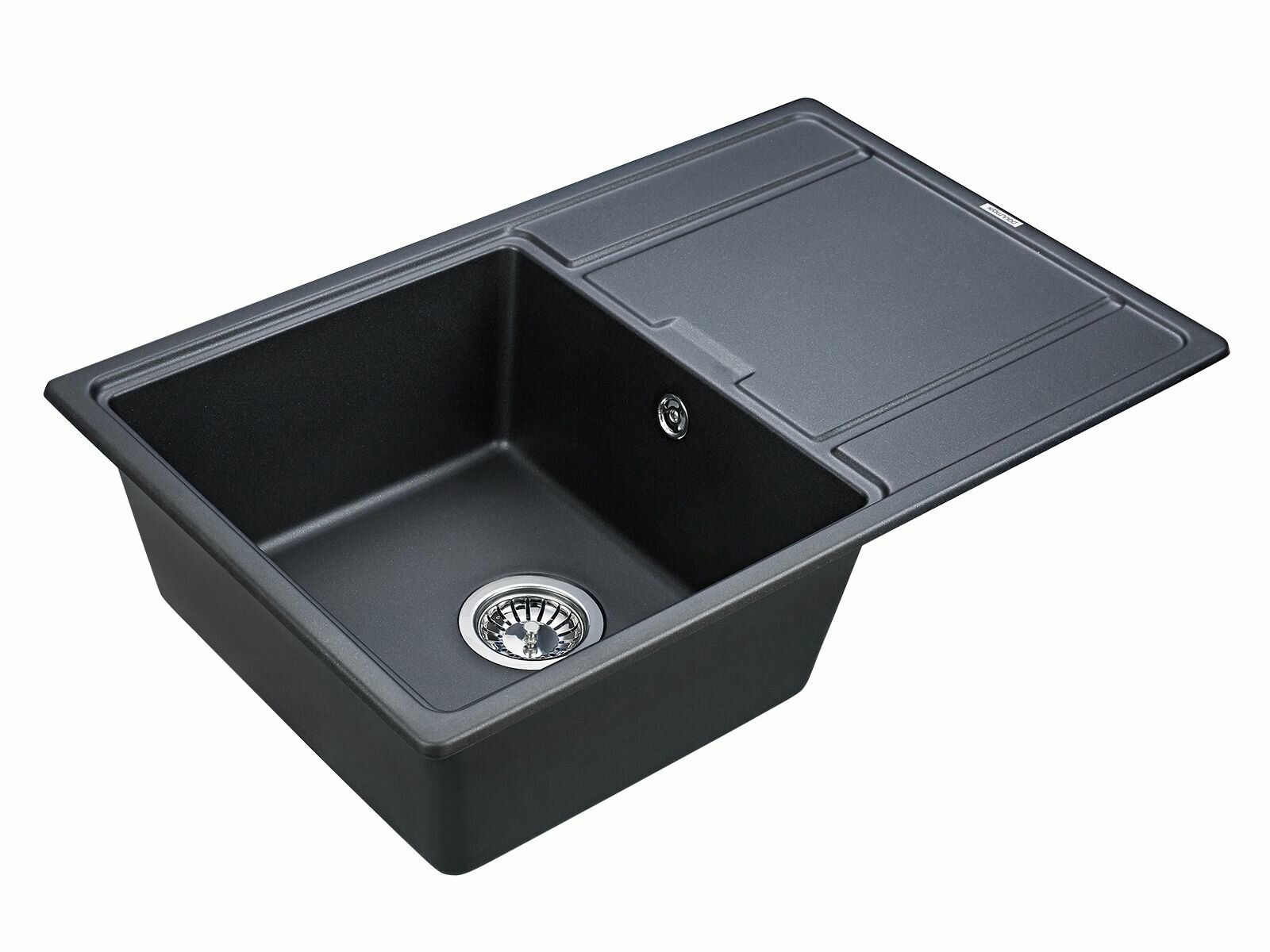 кварцевая мойка для кухни отличается высокой прочностью, устойчивостью к царапинам, гладкой поверхностью без пор, долговечностью, безопасностью в эксплуатации и экологичностью. материал-искусственный гранит. цвет-черный металлик. отверстия под смеситель - без готовых. намеченные отверстия под смеситель 2 . монтаж-встраиваемая сверху. диаметр слива 9,5 см. монтажная длина 48 см . монтажная ширина 76 см . ширина чаши 38 см . длина чаши 43 см. расположение крыла оборачиваемая. клапан-автомат приобретается отдельно.