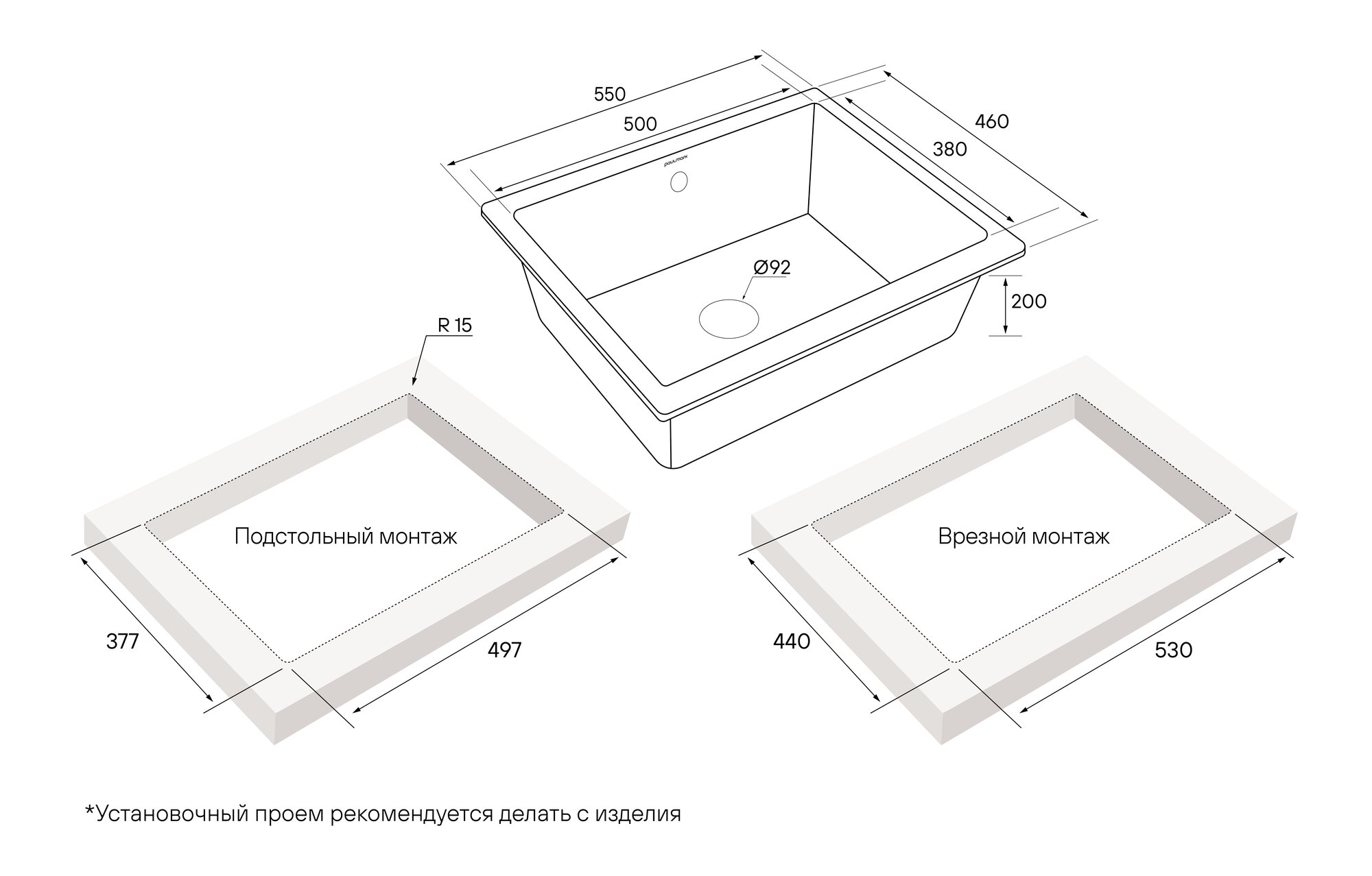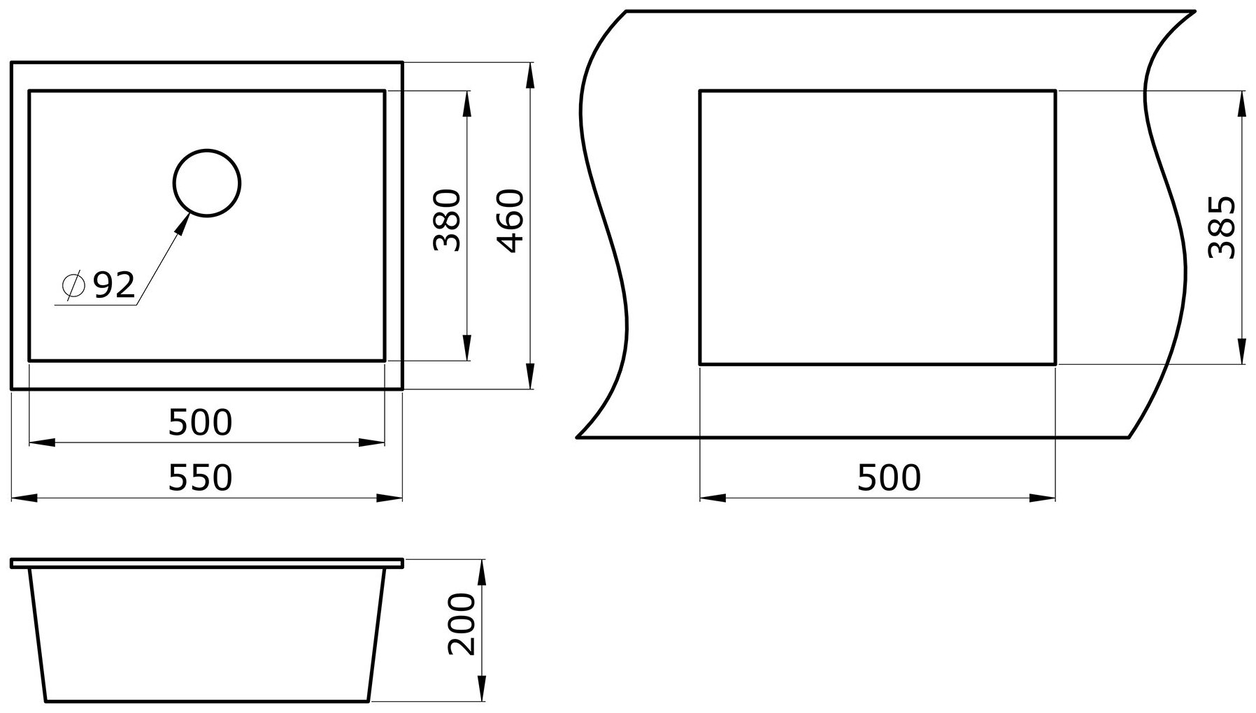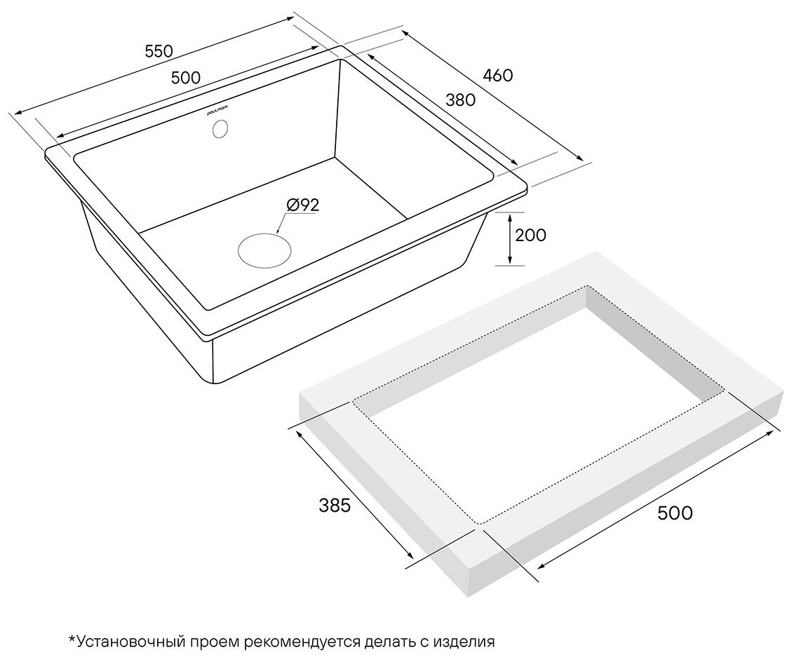 комплектация: мойка, сифон, гарантийный талон, инструкция; диаметр слива 92 мм