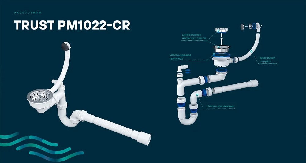 в комплектацию входит: комплект крепежей, сливная арматура, слив-перелив, сифон, герметик