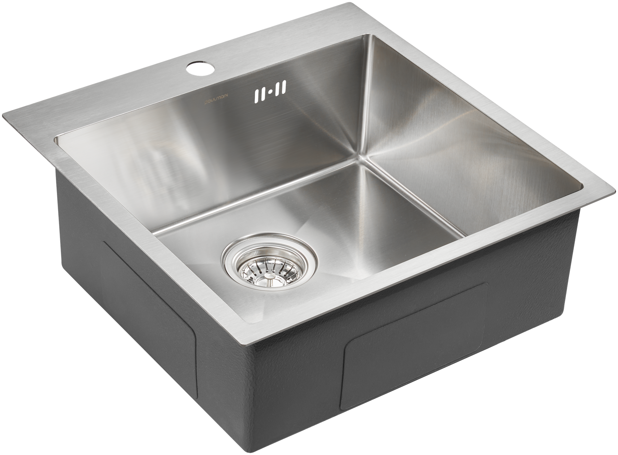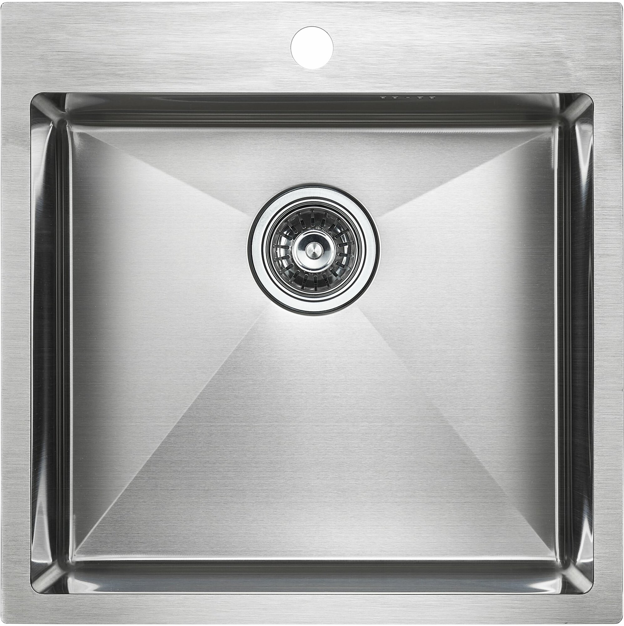толщина мойки: 1 мм; диаметр слива: 114 мм; радиус угла: R10; комплектация: мойка, сифон, крепеж для монтажа