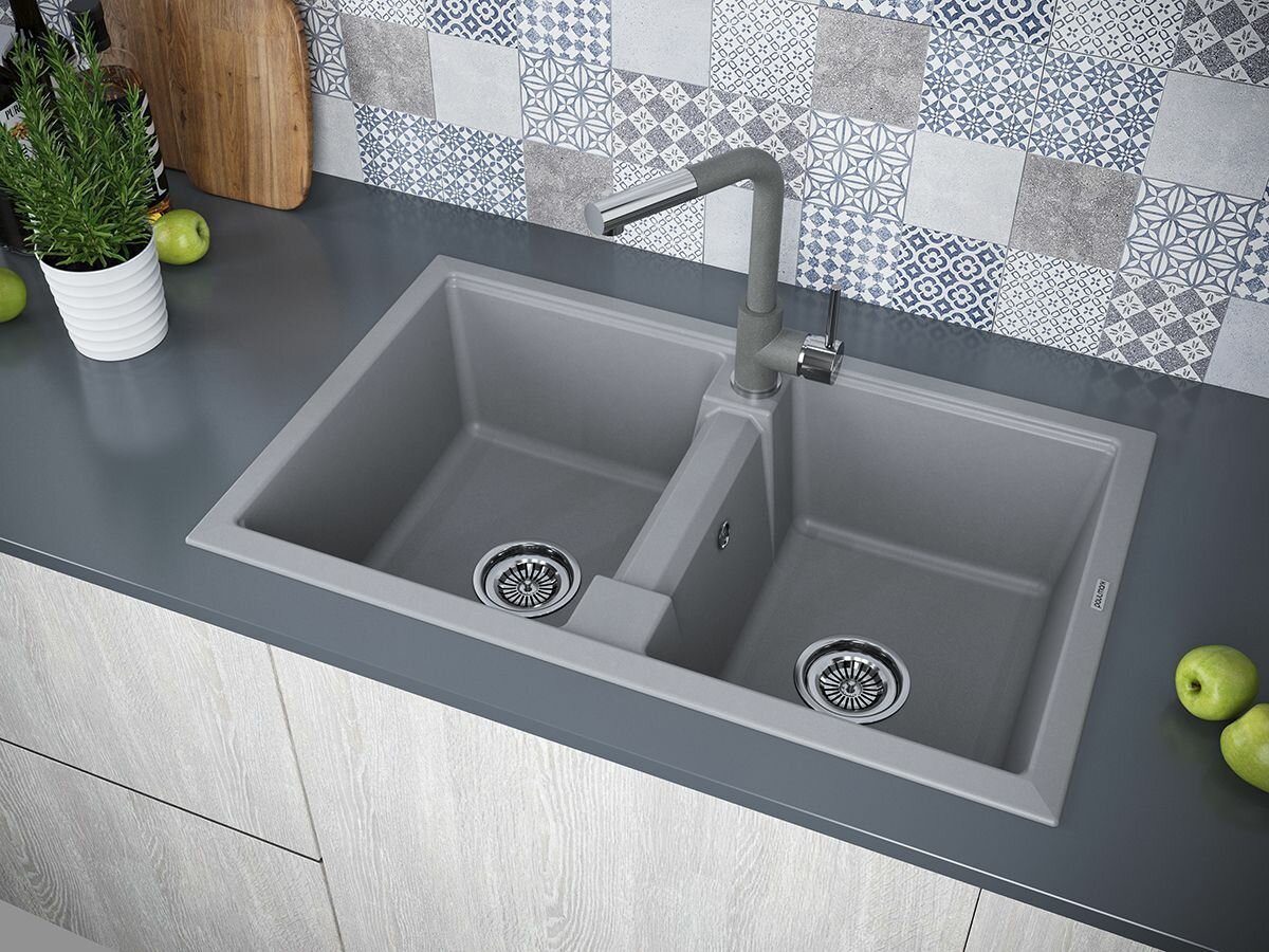 Кухонная мойка Paulmark TANDEM 80/2 PM238150-GRM серый металлик