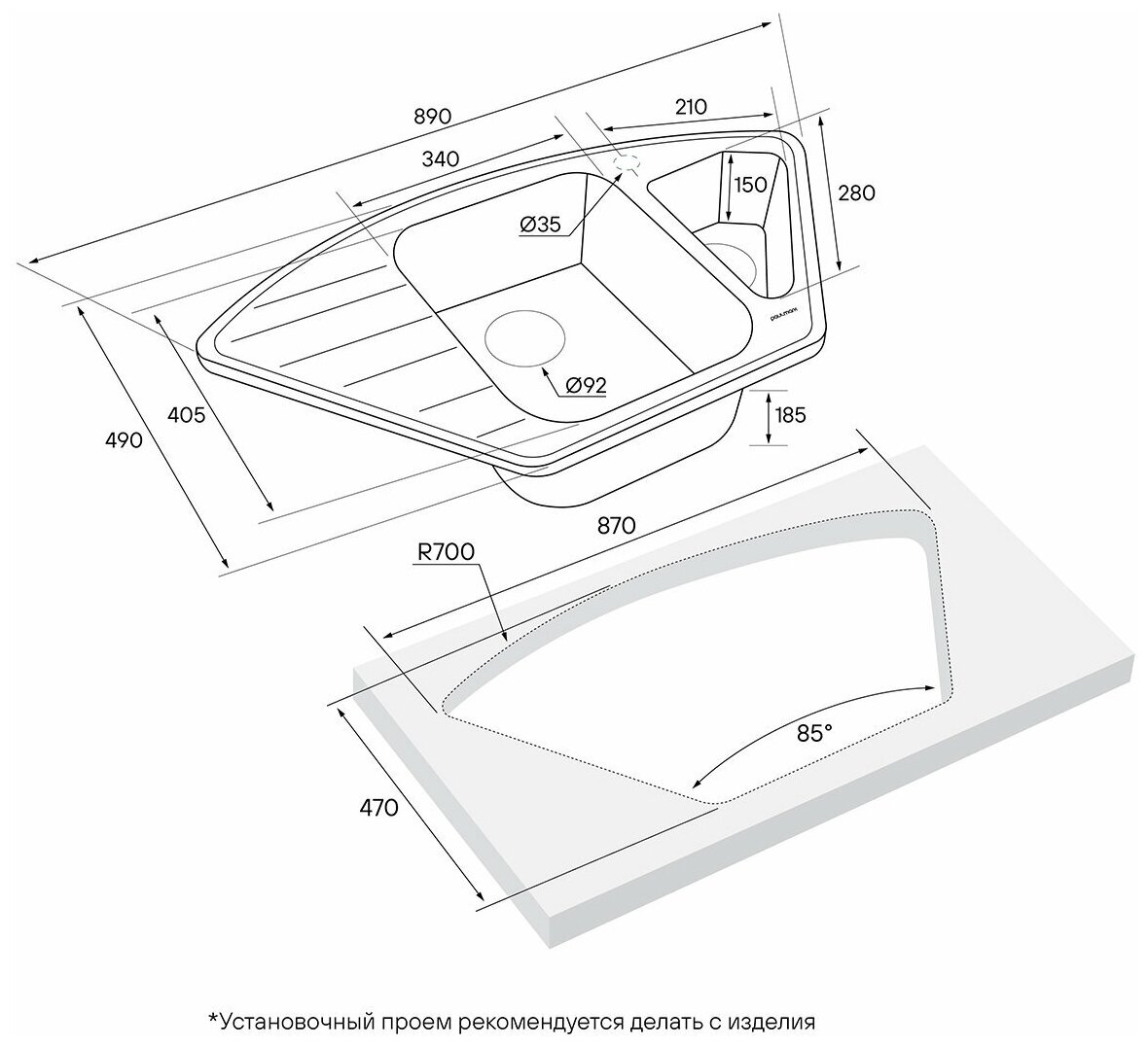 Кухонная мойка Paulmark Wiese PM529050-BLM черный металлик