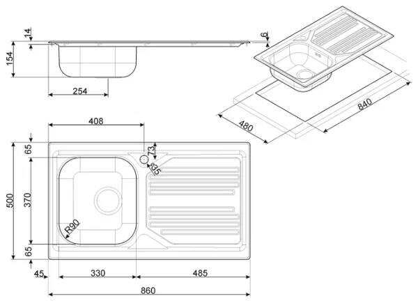 Сифон с возможностью подключения посудомоечной или стиральной машины Корзинчатый вентиль 3“ 1 / 2