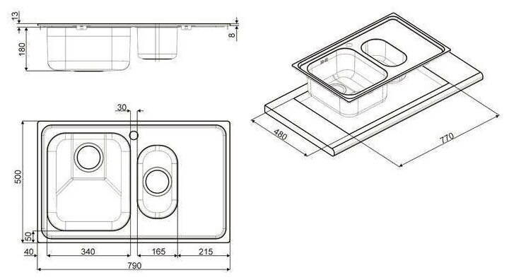 на столешницу, врезная
