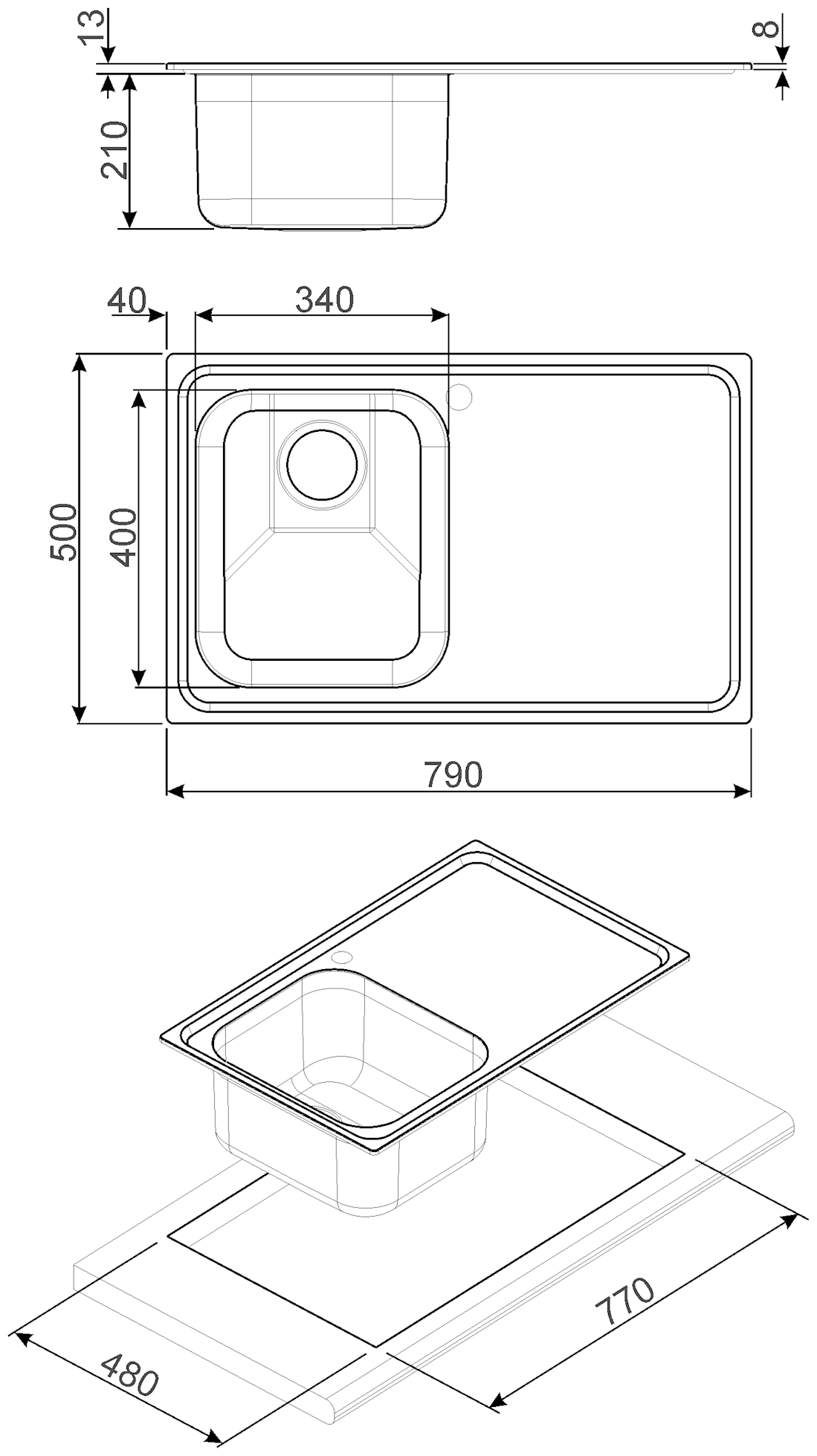 вровень со столешницей, врезная
