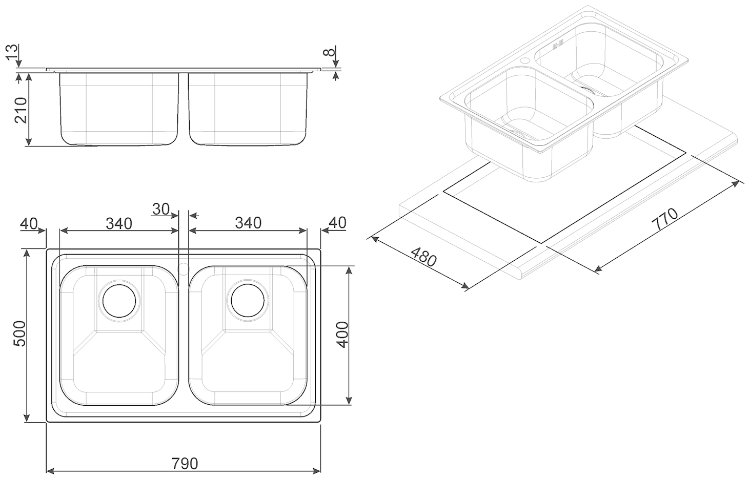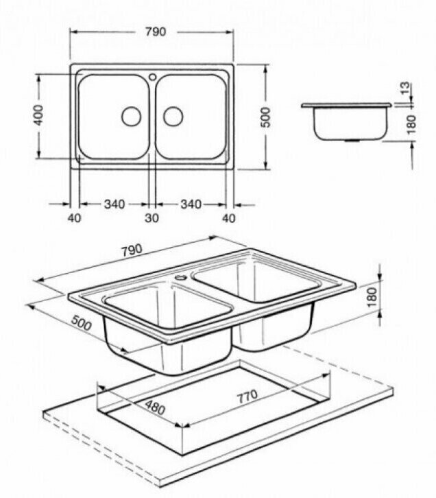 сифон с возможностью подключения посудомоечной или стиральной машины отверстие для смесителя