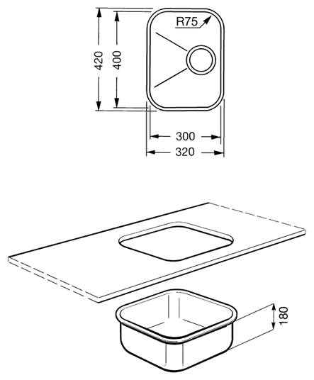 Радиус скругления мойки (см)