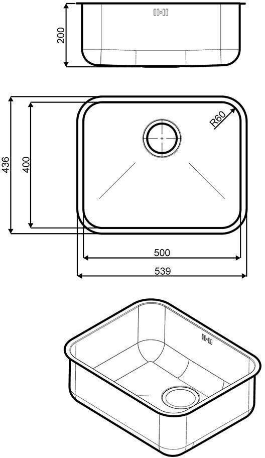 монтаж под столешницу, толщина металла 0.7 мм