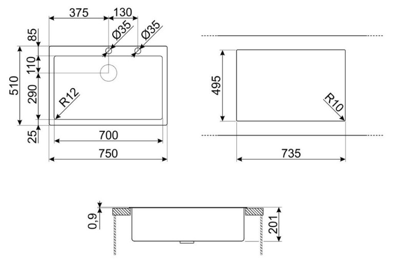 Тип нержавеющей стали: AISI304 Вес нетто (кг): 7.66 Тип эксцентрика: Push Перелив: скрытый монтаж Диаметр отверстия под смеситель: 35 мм Положение корзинчатого вентиля: у стенки чаши Тип: чаша сварная Тип зажимов: стандартный