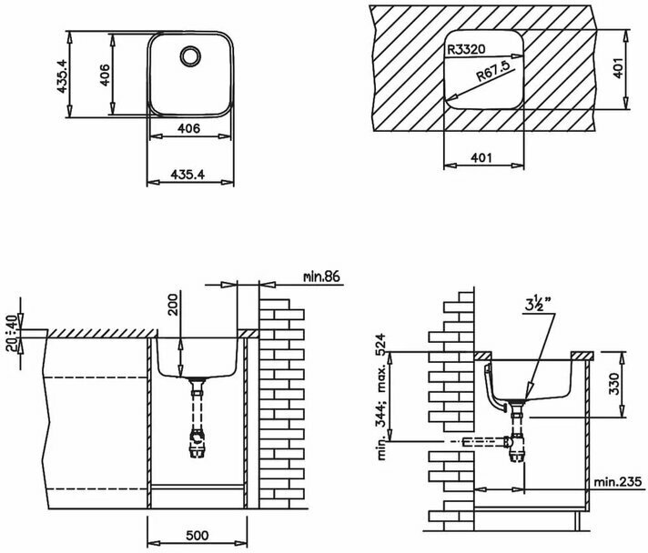 монтаж под столешницу; комплектация: корзинчатый слив на 3 1/2”, крепежи, перелив, инструкция по инсталляции