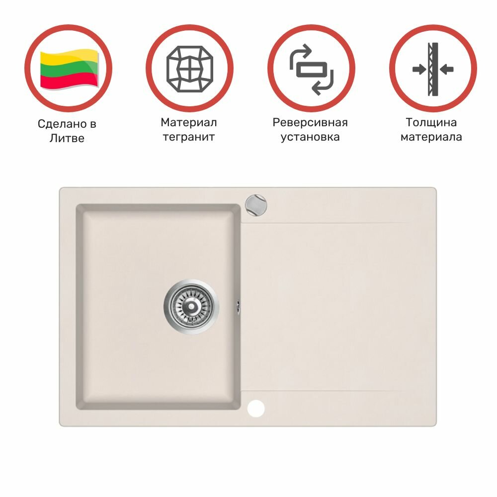 клапан-автомат, Кухонная мойка Teka CLIVO 45 B-TQ 1B 1D TOPAZ BEIGE (art.40148002), инструкция - 1 штука