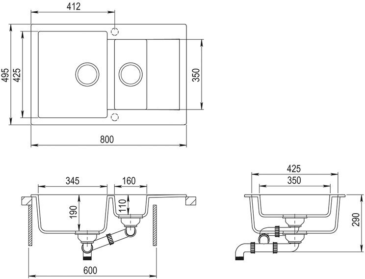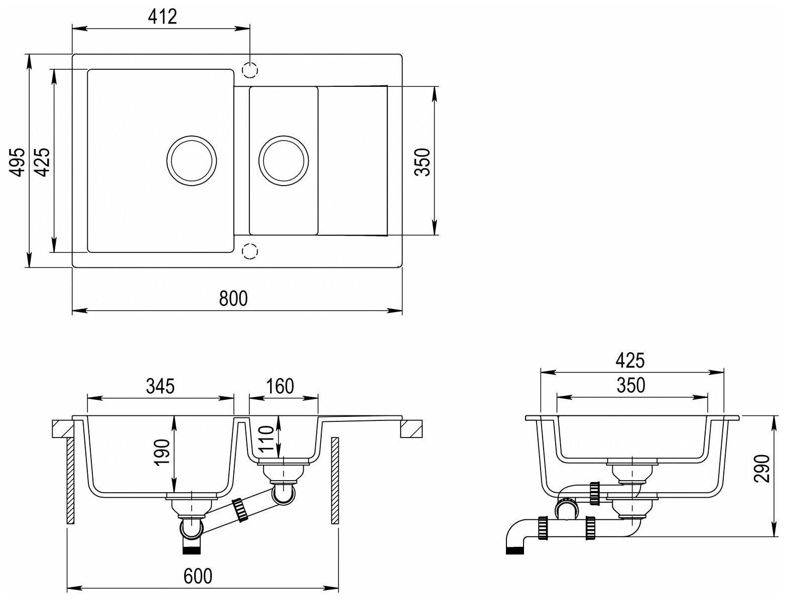 дополнительная чаша, Клапан-автомат, Перелив, С сифоном