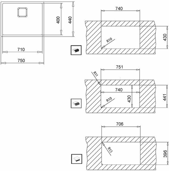 клапан-автомат, сливная арматура, квадратный слив с квадратной декоративной накладкой перелив с прямоугольной декоративной, крепление, мойка