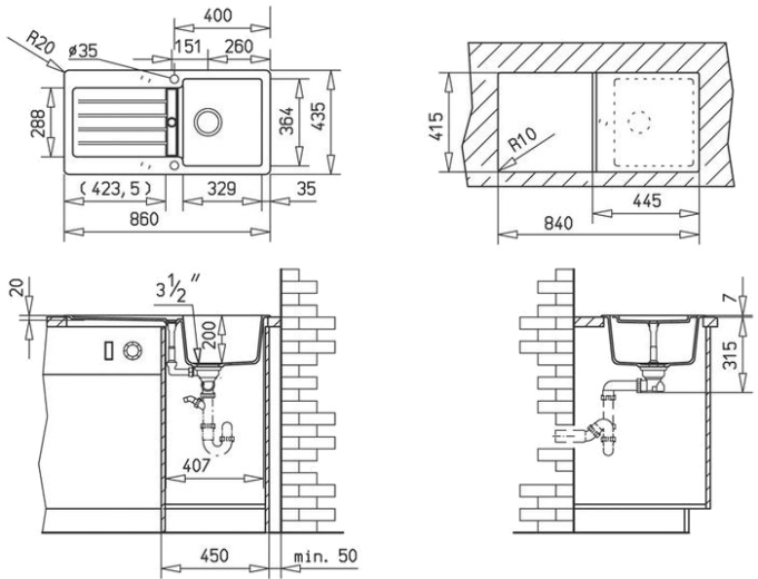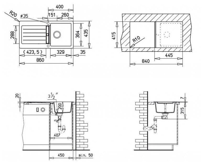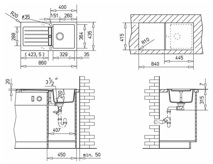 отверстие под смеситель, крепежи сливная арматура слив на 3 1/2” инструкция по инсталляции