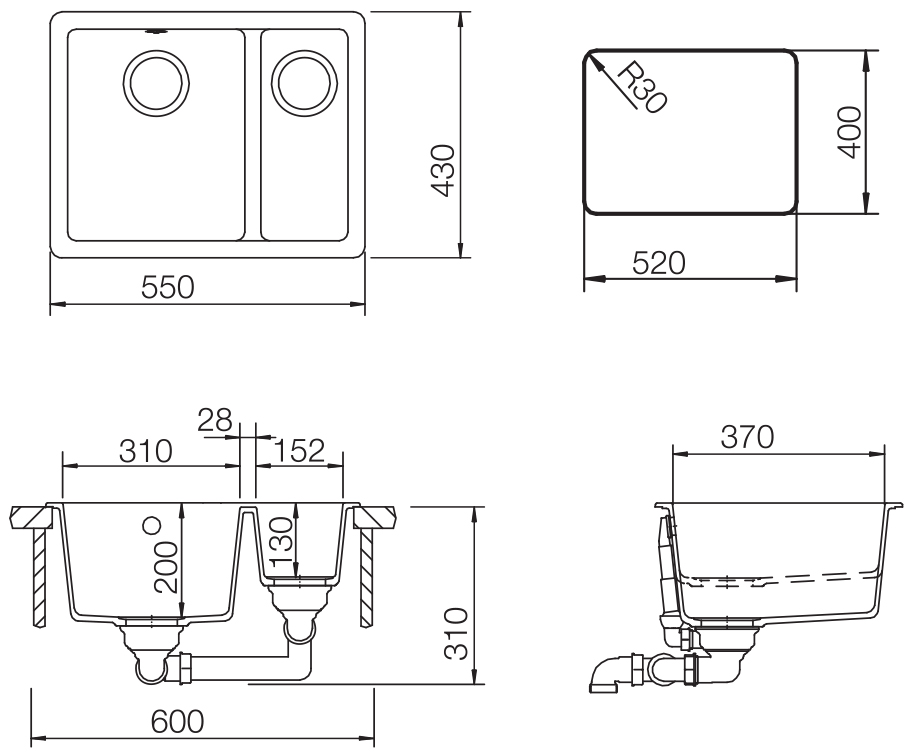 Кухонная мойка Teka RADEA 550/370 TG VANILIA (40143677)