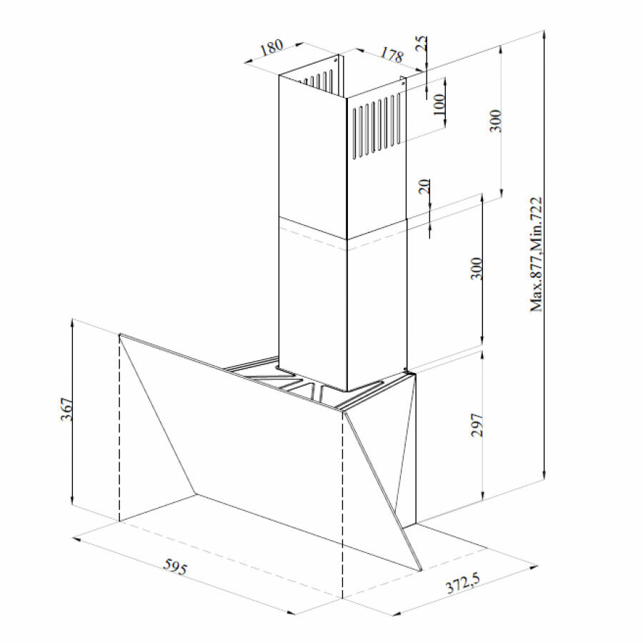2 лампы освещения, 3-слойный алюминиевый фильтр, 7, высота корпуса вытяжки 29