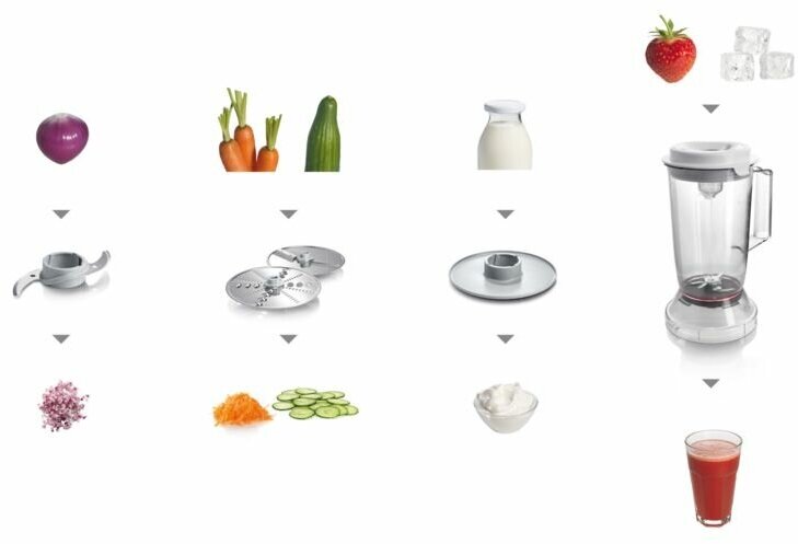 венчик для взбивания, для замешивания теста, для нарезки ломтиками, для нарезки соломкой, насадка-терка, универсальный нож, Для смешивания, Ломтерезка, Насадка-блендер, Нож-измельчитель, Чаша-измельчитель, Шинковка, для взбивания, есть, насадка для взбивания, насадка для нарезки ломтиками, насадка для нарезки ломтиками общее число насадок: 4, насадка для нарезки ломтиками общее число насадок: 5, насадка для теста, шинковка