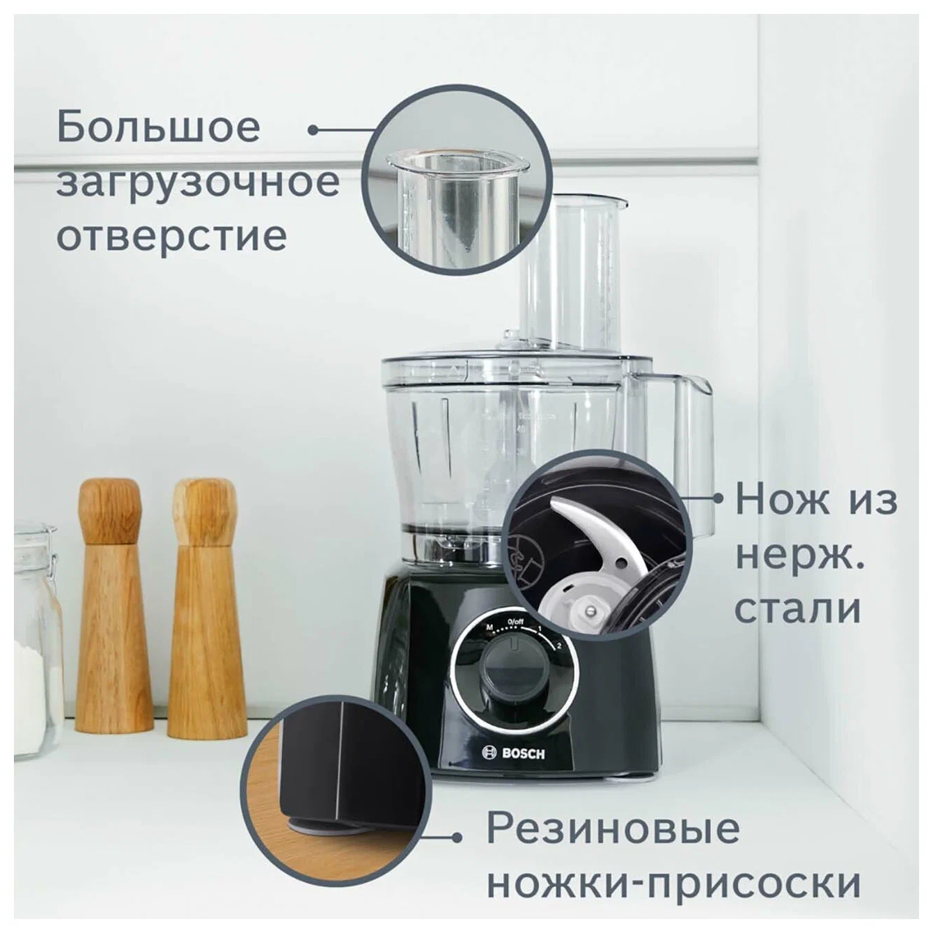 защитная крышка на чашу, место для хранения насадок и аксессуаров, отсек для сетевого шнура, прорезиненные ножки, LED индикатор работы, Отсек для шнура, место для хранения насадок