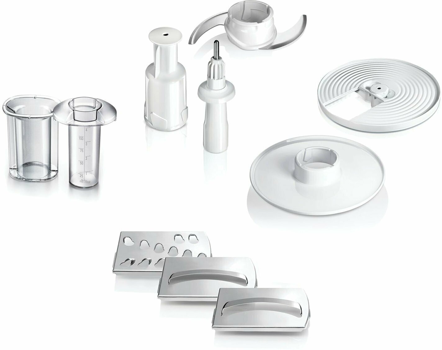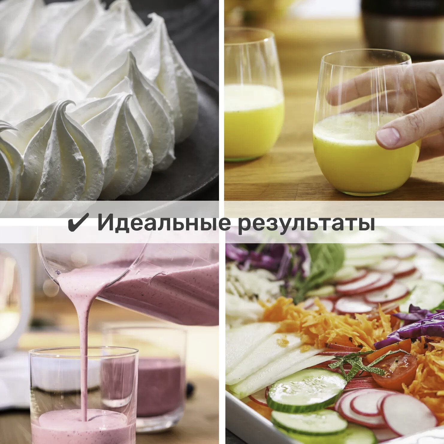 венчик для взбивания, для нарезки соломкой, насадка-терка, универсальный нож, эмульсионная, 2 диска для шинковки (крупная/мелкая), Для взбивания молочной пенки, Универсальный нож (нерж. сталь), Чаша-измельчитель, Шинковка, диск для взбивания (пластик), диск для нарезки соломкой, диск для нарезки соломкой общее число насадок: 5, диск-терка (крупная), для взбивания, для нарезки соломкой, эмульсионная, терка: 1, терка: 1 в комплекте, эмульсионная насадка