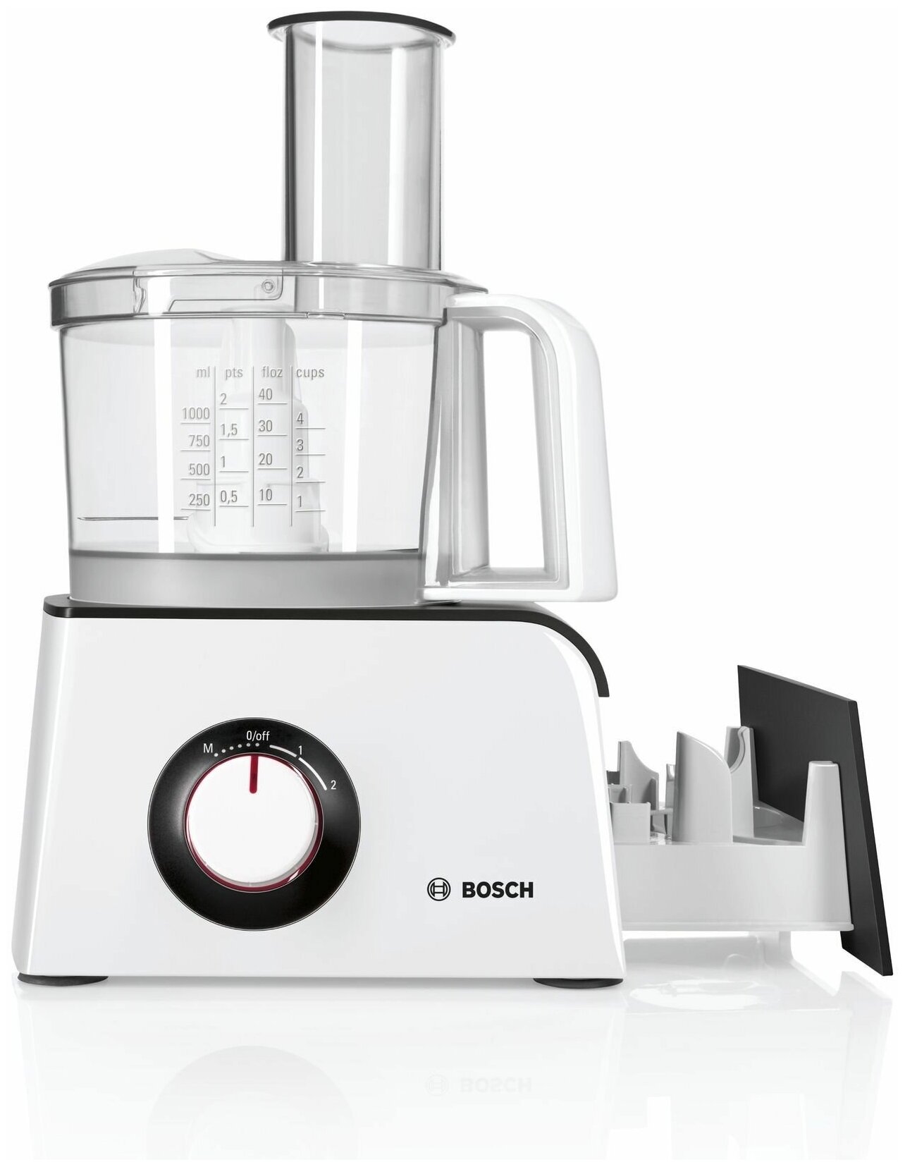импульсный режим, 2 насадки-терки (крупная/мелкая).Пресс для цитрусовых.Блендер из пластика объемом 1, 25 литра.Чаша для замешивания до 1 кг теста., Автоматическое замешивание теста, Защита от брызг, Защита от перегрузки (автоматический предохранитель), Универсальный нож (нерж. сталь), диск для взбивания (пластик).2 насадки-шинковки (крупная/мелкая)