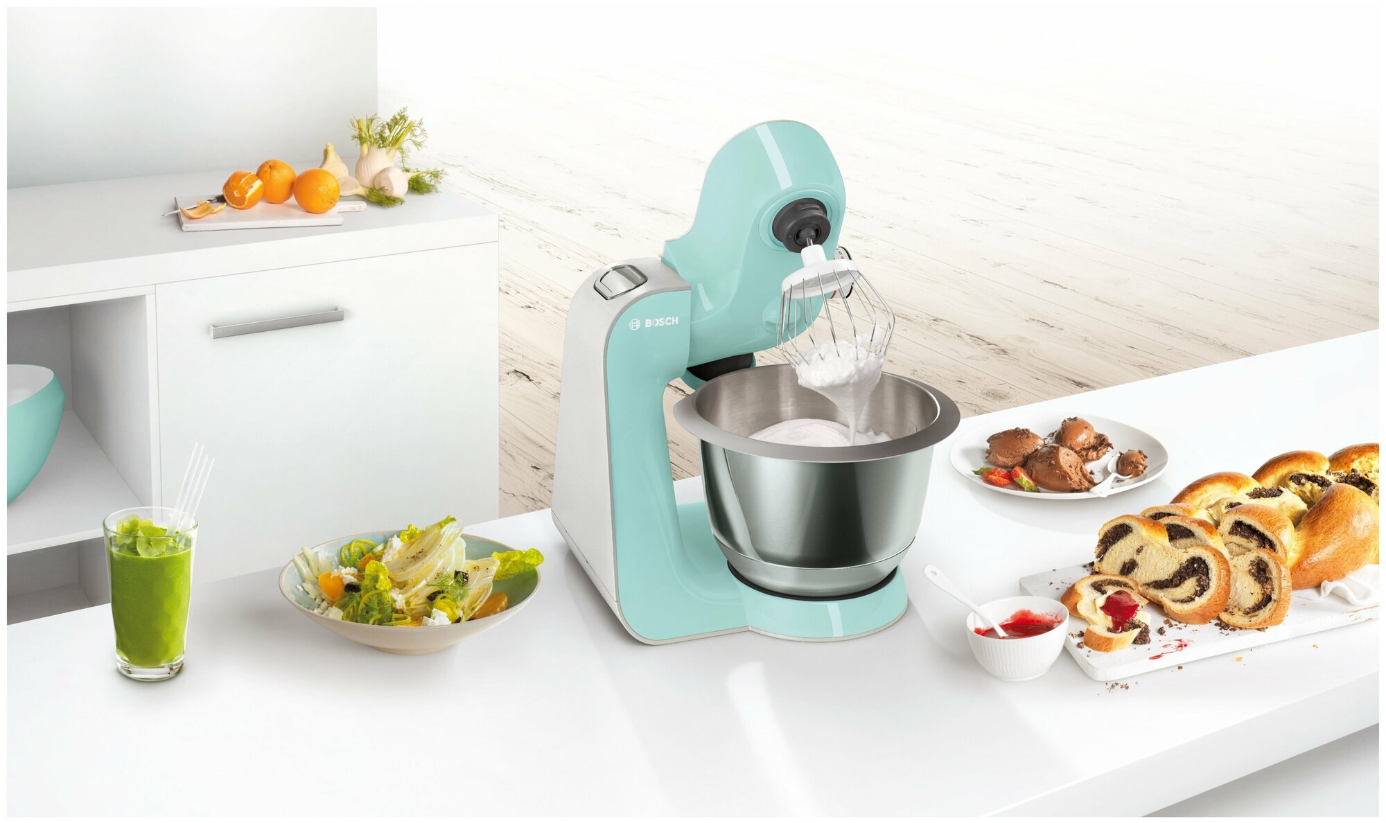 Отличная машина! Месит тесто, шинкует, режет, взбивает. Мощности хватает с запасом.