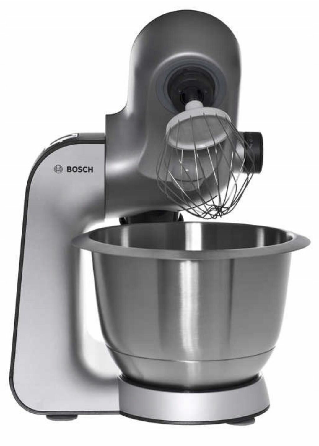 миска, крюк для замешивания, венчики, пластиковый кувшин миксера, защитная крышка, чехол для хранения принадлежностей, диск для нарезки, мясорубка, двухсторонний диск для терки, овощерезка и нарезка для фруктов, насадка для нарезки кубиками, терка для картофеля, соковыжималка для фруктов и овощей , насадка для терки, взбиватель