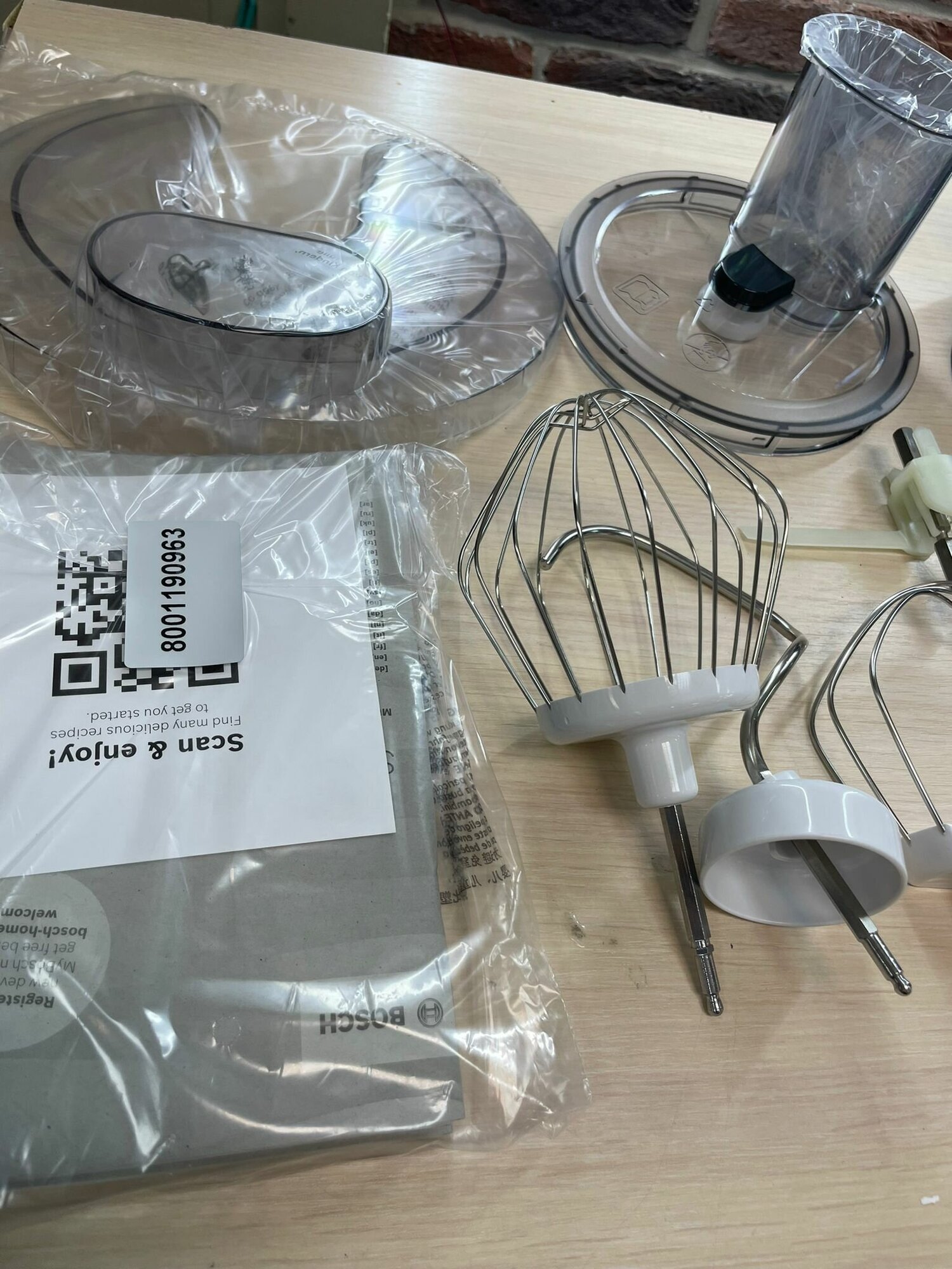 Кухонная машина, документация, венчик, насадка для нарезки овощей, насадка для теста