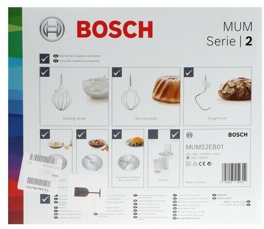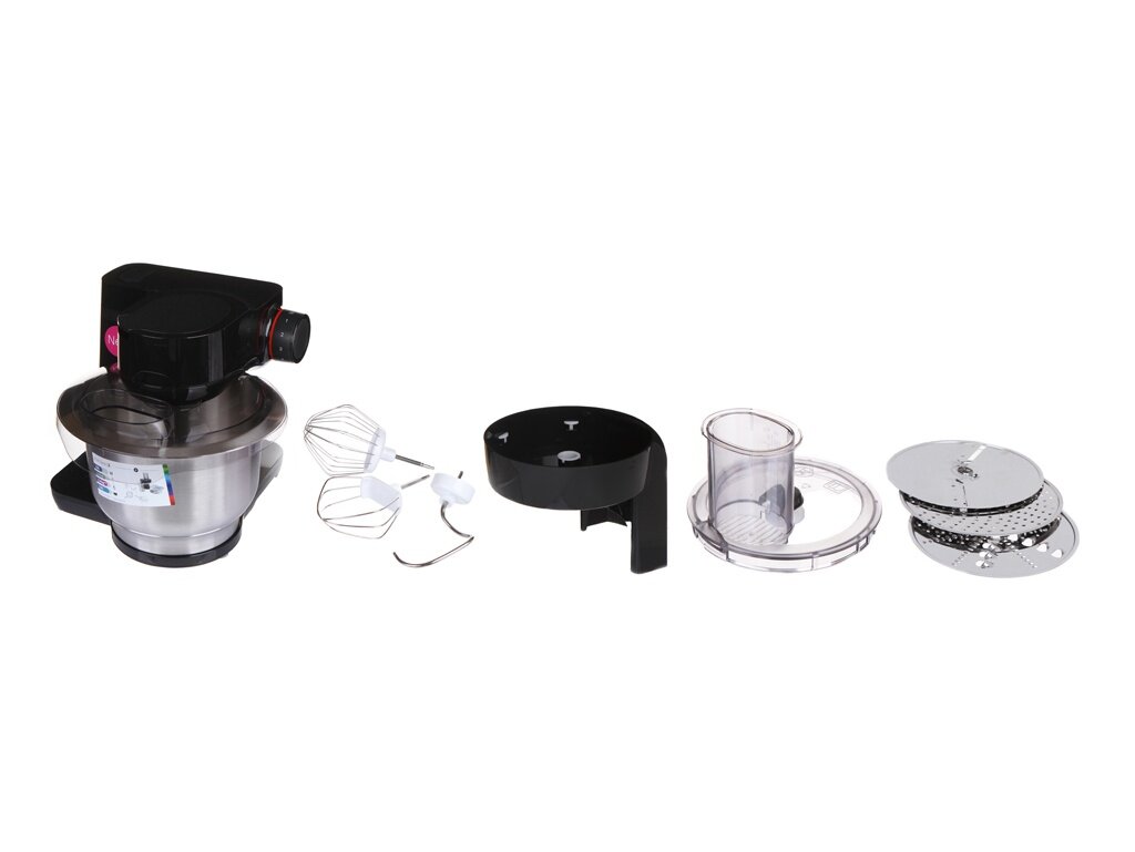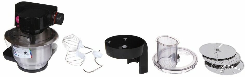 венчик для взбивания, для замешивания теста, для нарезки ломтиками, насадка-терка, Для взбивания молочной пенки, Для смешивания, Ломтерезка, Насадка-блендер, Нож-измельчитель, Соковыжималка, Чаша-измельчитель, Шинковка, венчик для жидкого теста, двусторонняя терка, двусторонняя шинковка, для взбивания, для смешивания, насадка для взбивания, насадка для нарезки ломтиками, насадка для теста, общее число насадок: 6, овощерезка, терка для сыра/ шоколада/ орехов, тестомес, универсальная резка с 3 режущими дисками.