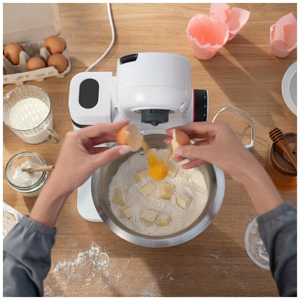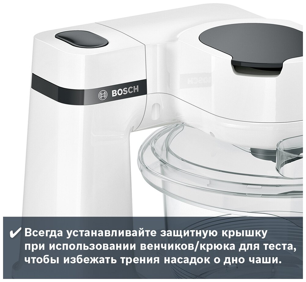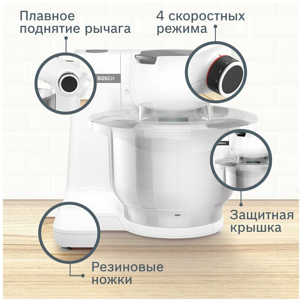защита от перегрузки, планетарное движение, Автоматическое замешивание теста, Защита от брызг, Защита от перегрузки (автоматический предохранитель), Плавное изменение скорости, мойка съемных частей в посудомоечной машине, планетарное вращение, прорезиненные ножки