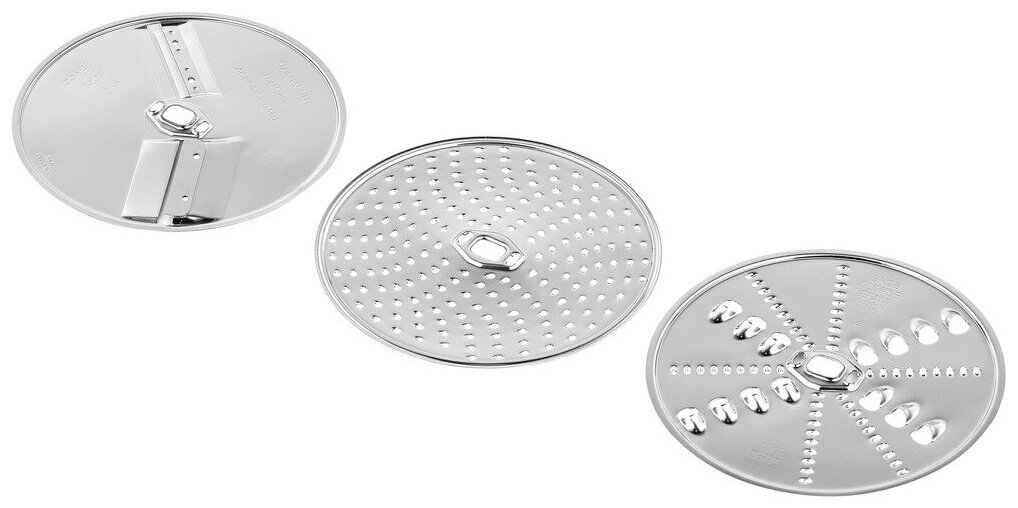 - универсальная резка с 3 режущими дисками (двусторонняя терка, двусторонняя шинковка, терка для сыра/ шоколада/ орехов);