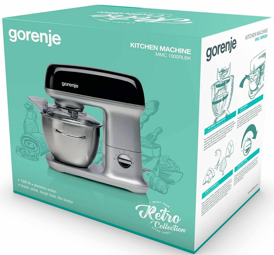 Кухонная машина Gorenje Retro MMC1000RL насадка для теста;- лопатка для смешивания;- силиконовая лопатка для смешивания;- венчик для взбивания.