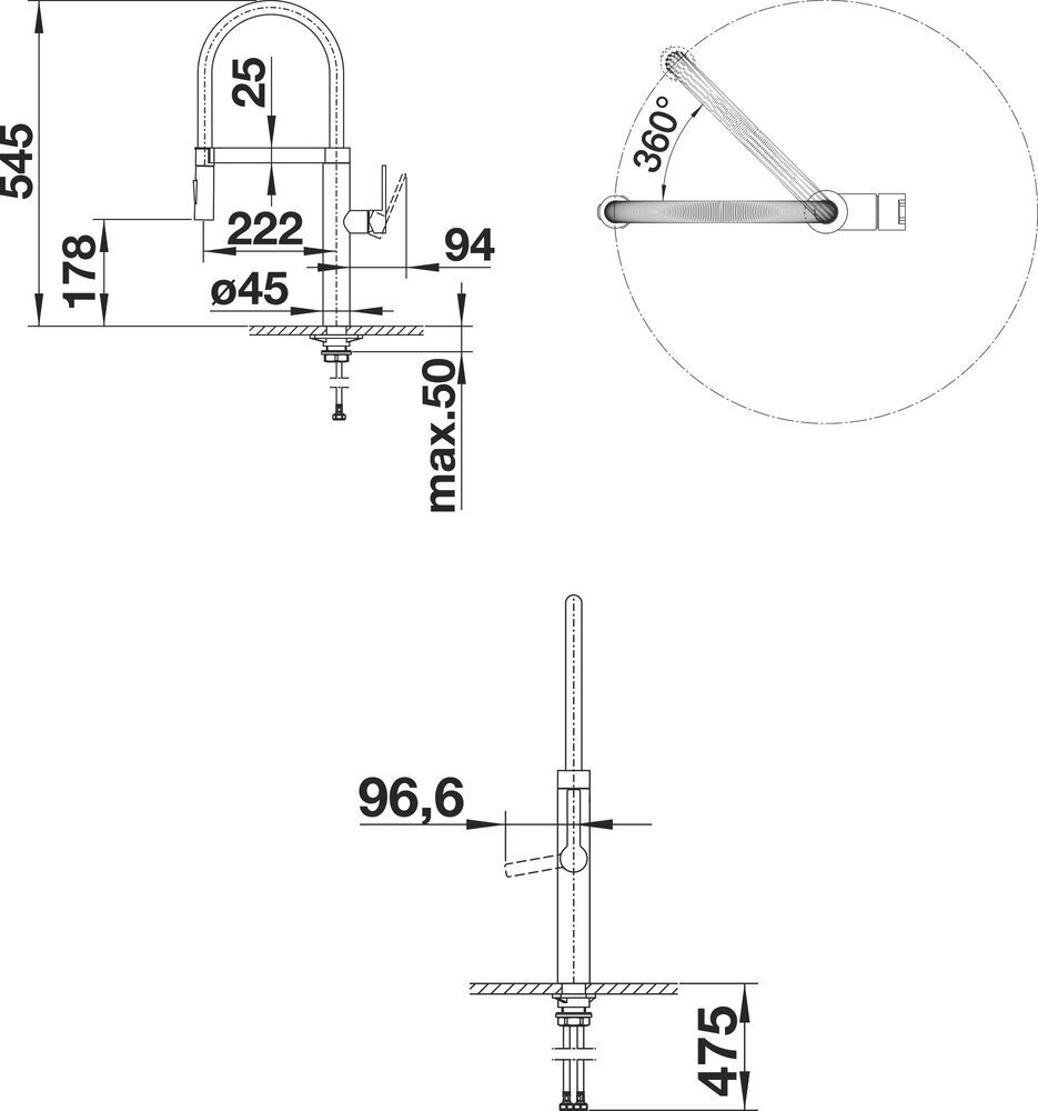 выдвижной, гибкий, поворотный, пружинный, Высокий, высота 299 мм, длина 220 мм, традиционный