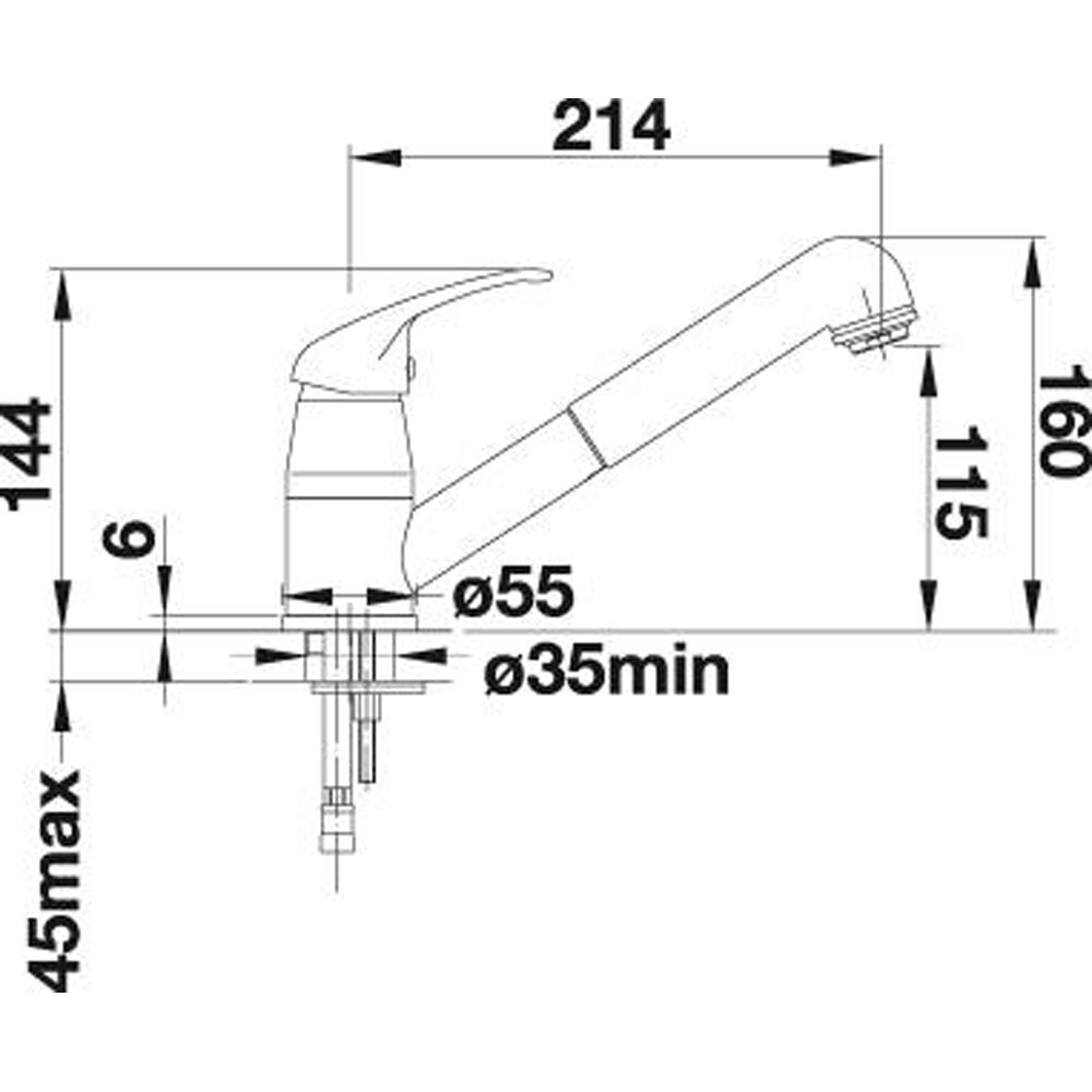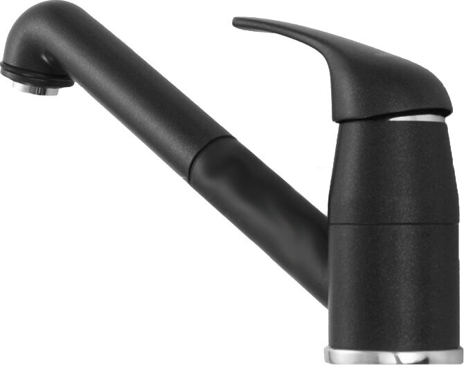 однорычажный смеситель, поворотный излив, требуется отверстие под смеситель Ø 35 мм, керамический дисковый картридж, легкое подключение гибкими шлангами длиной 350 мм с гайкой 1/2“, шланг выдвижного излива с нейлоновой оплеткой, возвратный клапан, предотвращающий возврат воды