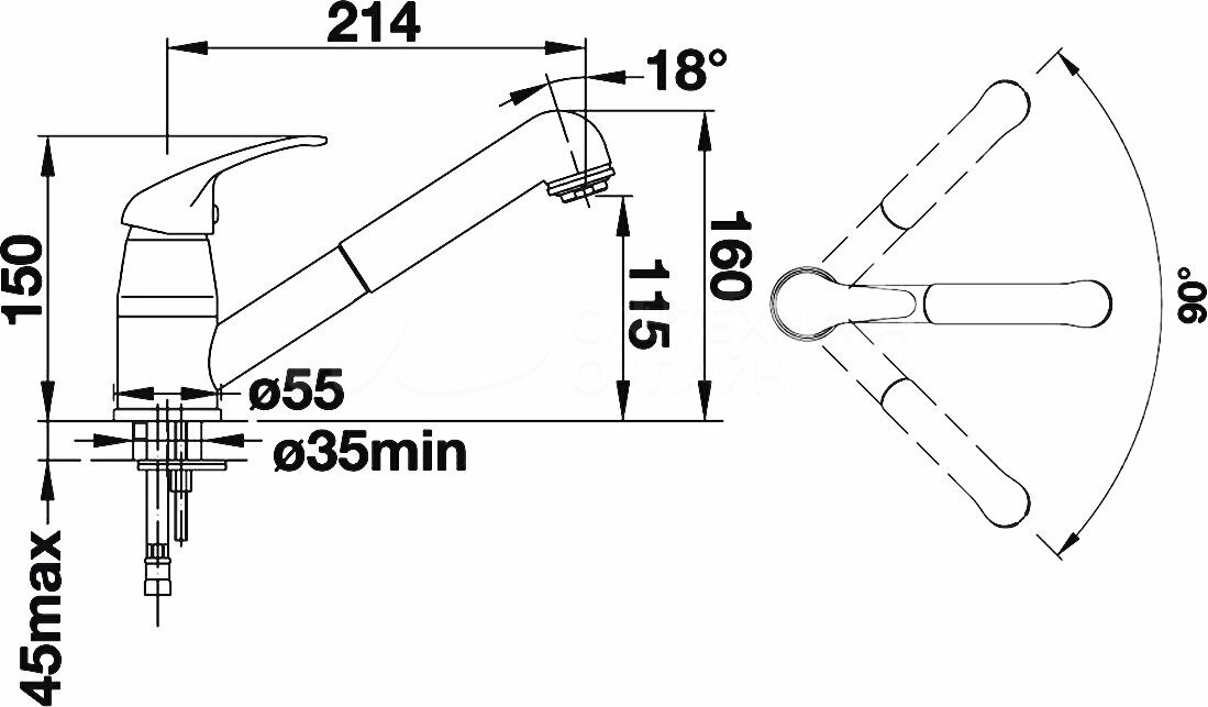 вращение излива на 80 градусов