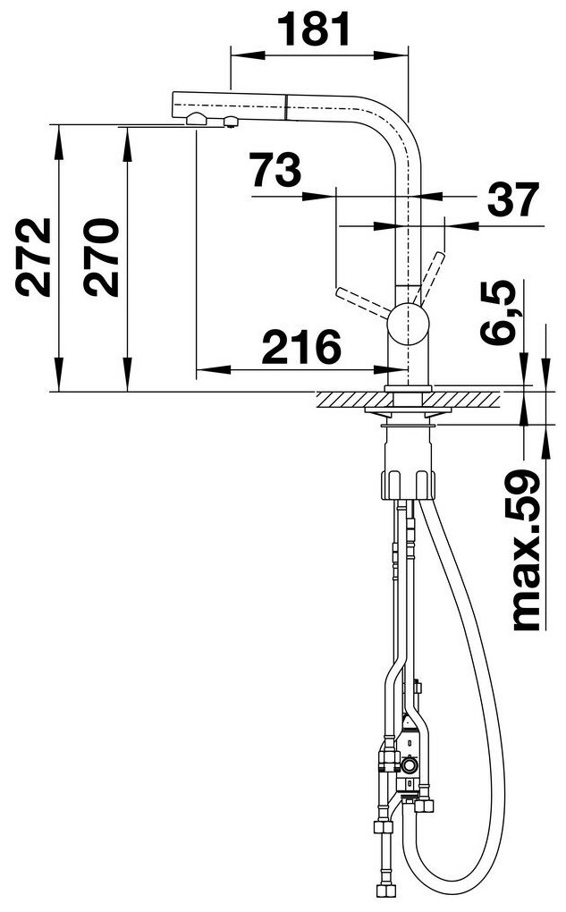 аэратор, встроенный фильтр, поворотный излив, Гибкая подводка, Обратный клапан, Поворотный, С краном для питьевой воды