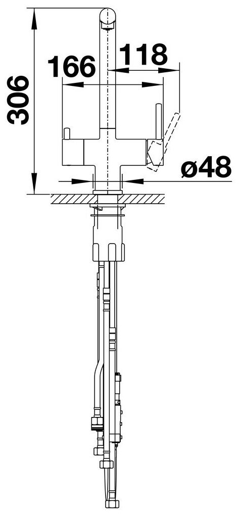 выдвижной, гибкий, для фильтрованной воды, поворотный, Высокий, Длинный, Совмещенный излив для питьевой воды, высокий, высота 267 мм