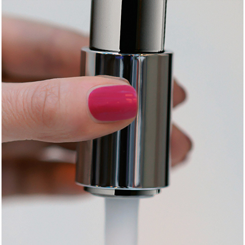 Положение рычага: Справа Гибкие шланги: 530 мм Тип картриджа: диски Ø 28 Водосберегающая технология WaterSaving Фиксированный носик с функцией душа (Up-позиция для обычной струи, Down-позиция для душа)