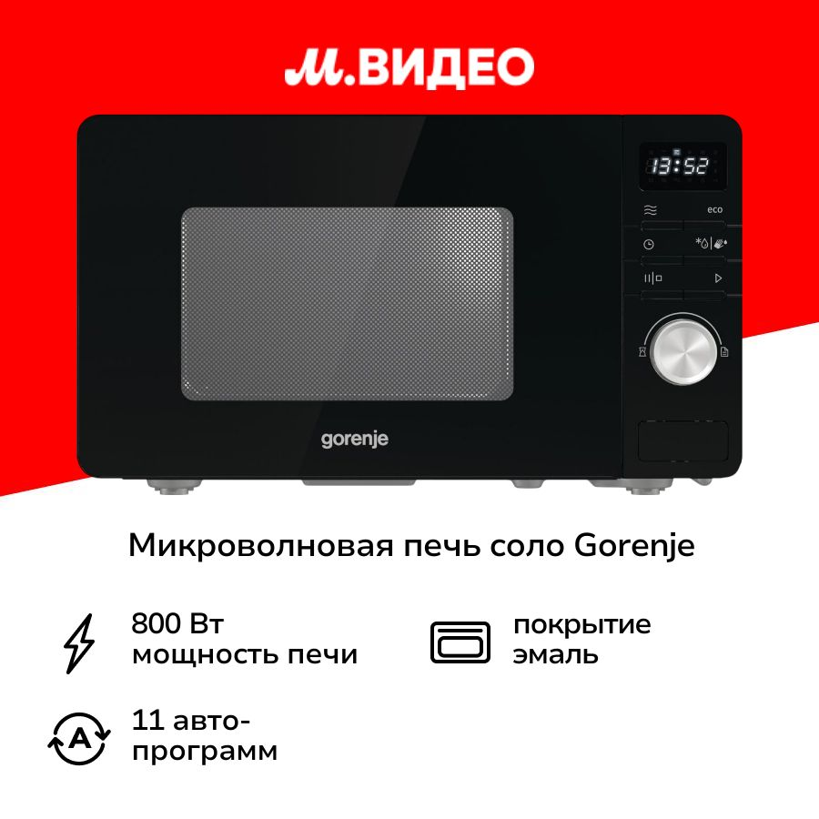 блюдо для хрустящей корочки, вертел, емкость для приготовления на пару, Микроволновая печь, Микроволновая печь - 1 шт, Микроволновая печь Gorenje MO20A3B, документация, инструкция, микроволновая печь, стеклянная тарелка поворотного стола, упаковка