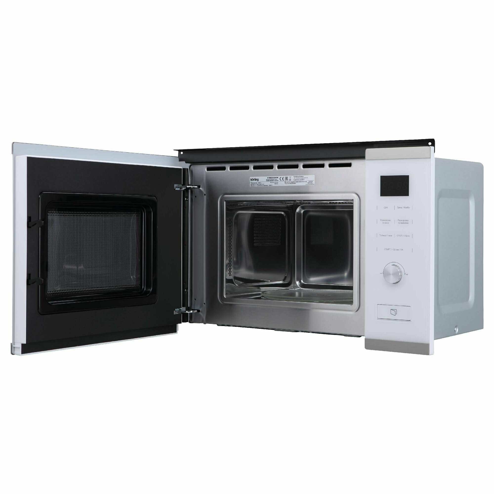 LED дисплей белого цвета Cold White, Встраиваемая микроволновая печь Korting KMI 820 GSCW, Дизайн Spectrum, Объем 20 л, Руководство по эксплуатации, Сенсорное управление Touch Control с поворотным регулятором, документация, печь свч