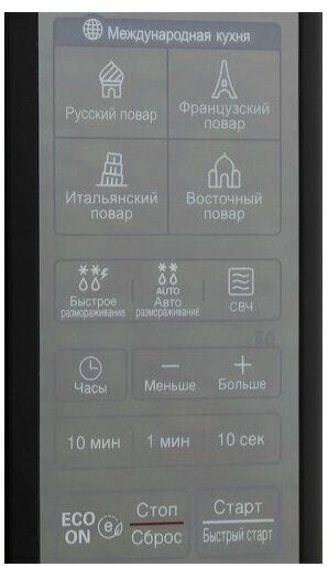 автоматическая разморозка, автоматический разогрев, автоматическое приготовление, звуковой сигнал отключения, ускоренная разморозка, ускоренный разогрев, экспресс-режим приготовления