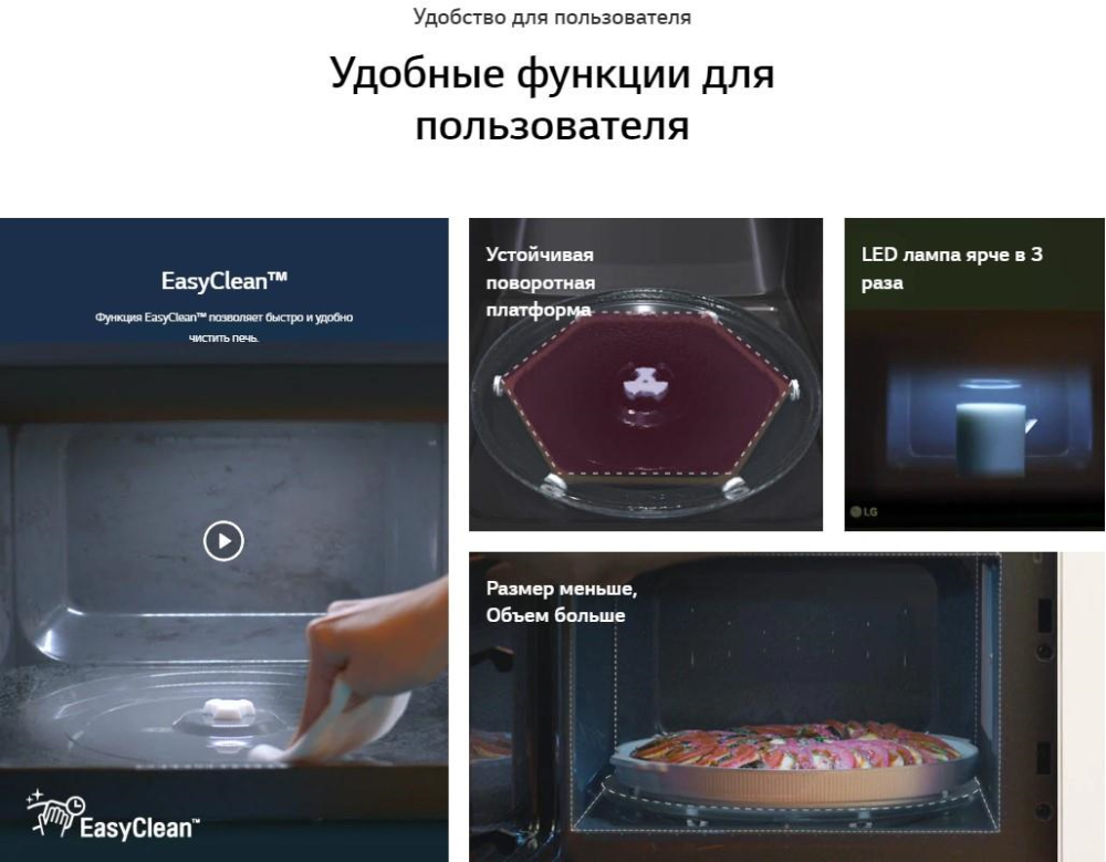 без поворотного стола, блокировка от детей, дисплей, кнопка +30 секунд, подсветка камеры, программирование рецептов в память, сенсор пара, система равномерного распределения микроволн, Автоотключение, Быстрый старт, Внутреннее освещение, Защита от перегрузки (автоматический предохранитель), Звуковой сигнал, Инверторная система, Легкоочищаемое покрытие EasyClean, Поворотный стол, Программирование рецептов, Регулировка времени приготовления, Регулировка температуры, Режим энергосбережения, С поворотным столом, Таймер, Функция быстрой разморозки, Часы, автоматическая разморозка, автоматическая разморозка, автоматическое приготовление, блокировка от детей, автоматическое приготовление, дисплей, подсветка камеры, блокировка от детей, система равномерного распределения микроволн, звуковой сигнал отключения, режим разморозки