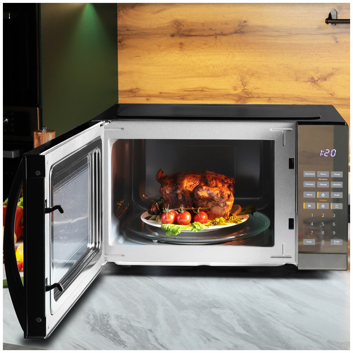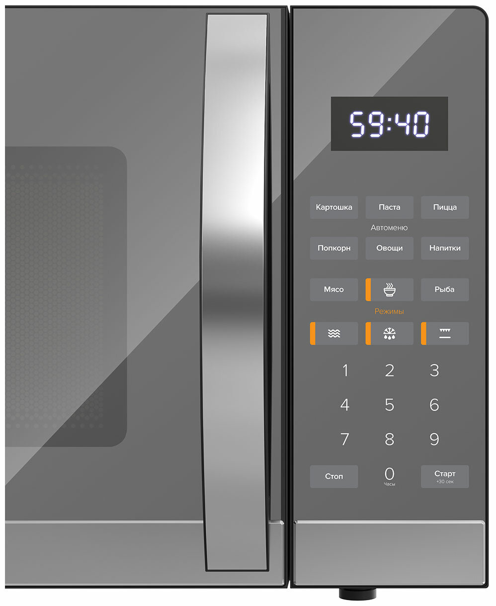 автоматическая разморозка, звуковой сигнал отключения, программирование процесса приготовления, комби-режим