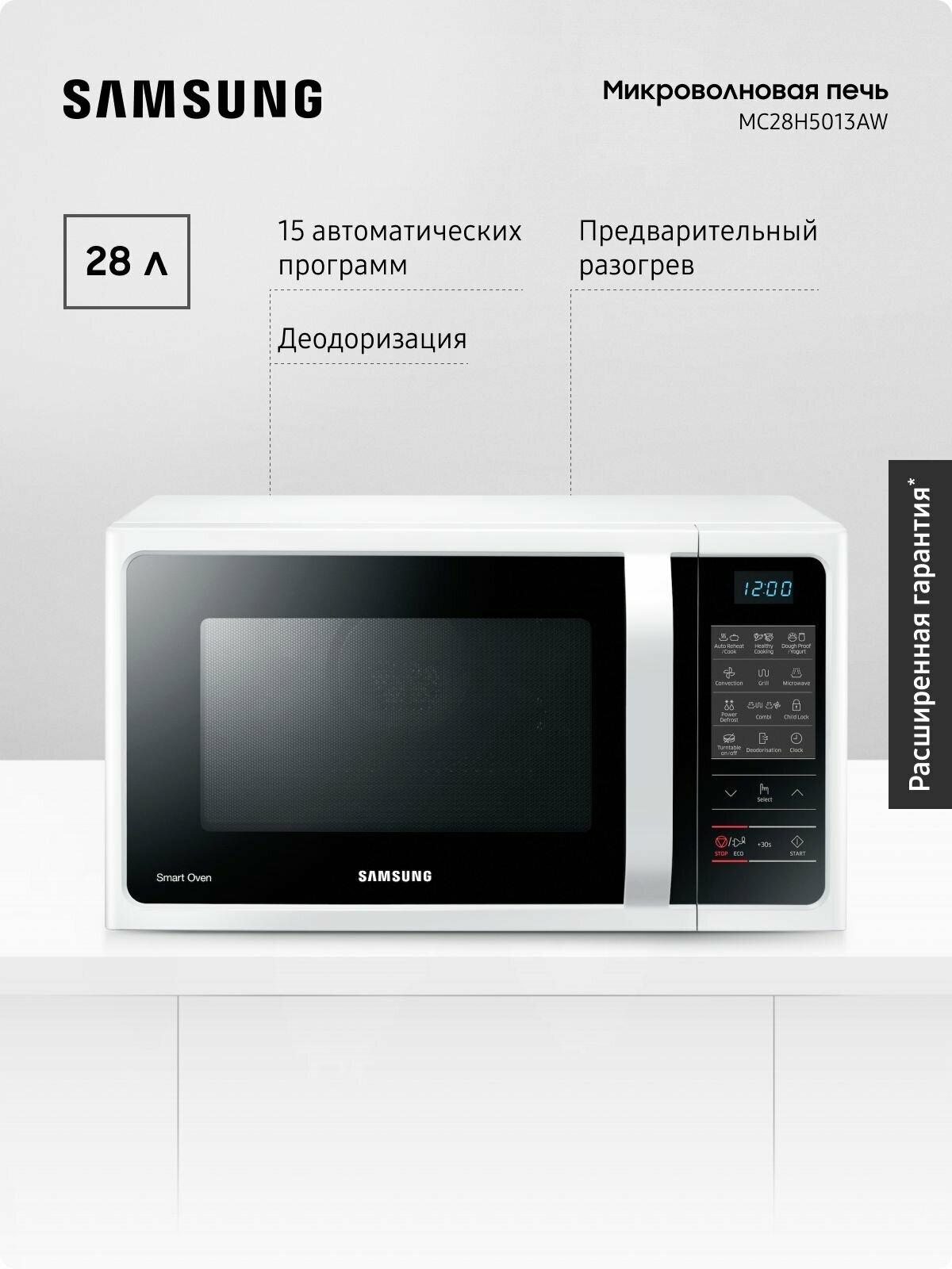 автоматическая разморозка, автоматический разогрев, автоматическое приготовление, звуковой сигнал отключения, режим удаления запахов, ускоренная разморозка, размораживание по весу, система равномерного распределения микроволн