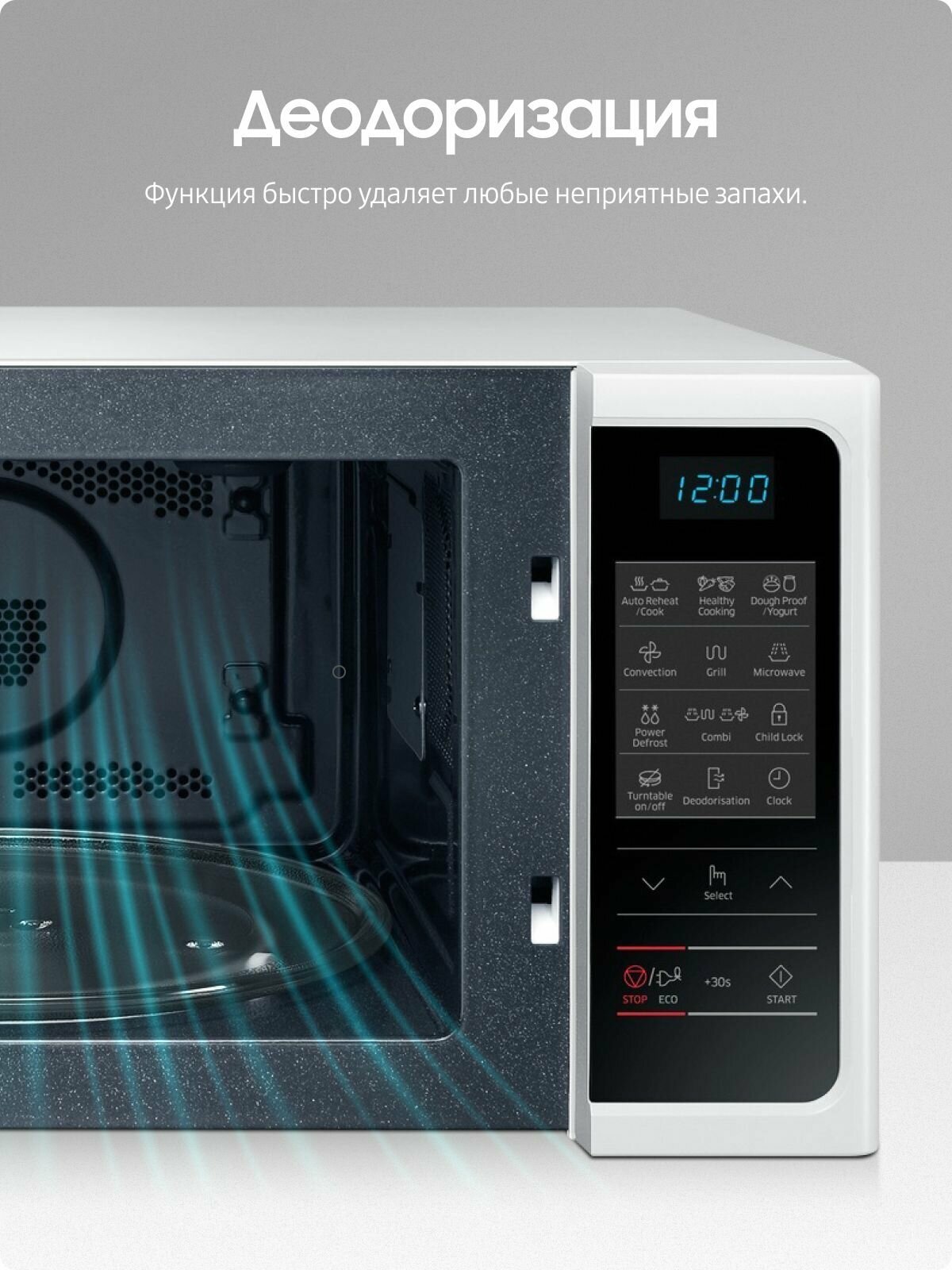 без поворотного стола, блокировка от детей, дисплей, кнопка +30 секунд, отключение звукового сигнала, подсветка камеры, сенсор пара, система равномерного распределения микроволн, функция задержки пуска, 6 уровней мощности, Автоотключение, Быстрый старт, Внутреннее освещение, Поворотный стол, Регулировка времени приготовления, С поворотным столом, Таймер, Часы, автоматическая разморозка, автоматическое приготовление, возможность отключения поворотного стола, гриль, звуковой сигнал отключения, конвекция, режим разморозки, режим удаления запахов, решетка для гриля, таймер