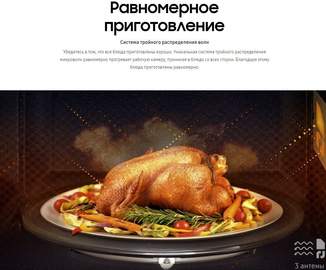блокировка от детей, дисплей, подсветка камеры, система равномерного распределения микроволн, утапливаемые переключатели, 6 уровней мощности., Автоотключение, Внутреннее освещение, Поворотный стол, Регулировка температуры, С поворотным столом, Часы, автоматическая разморозка, гриль, звуковой сигнал