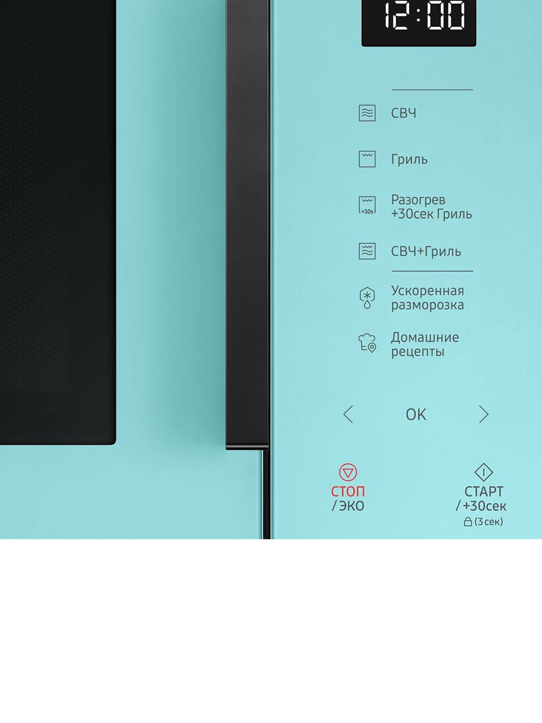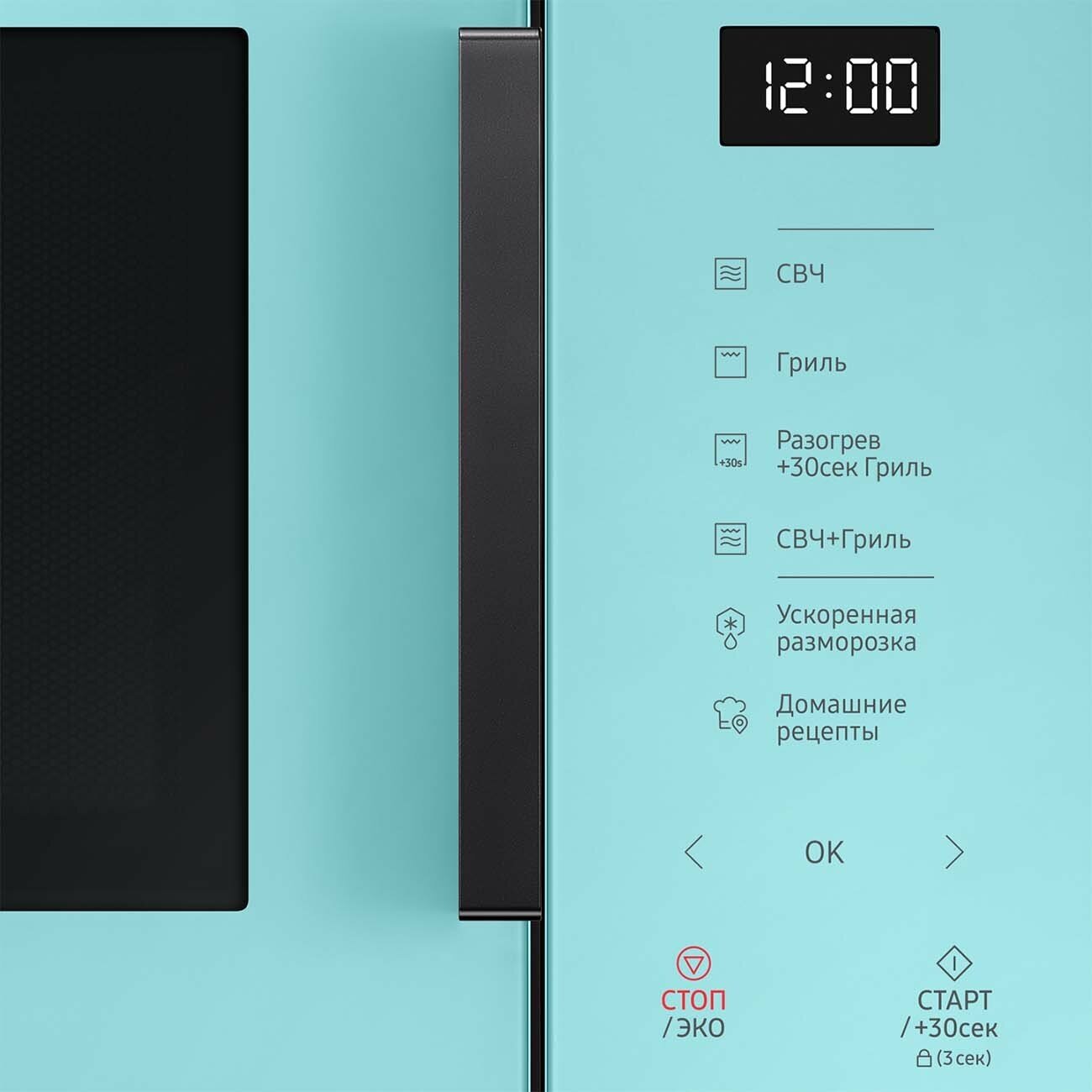блокировка от детей, дисплей, кнопка +30 секунд, подсветка камеры, сенсор пара, система равномерного распределения микроволн, БИОкерамическое покрытие, Быстрый старт, Внутреннее освещение, Защита от перегрузки (автоматический предохранитель), Поворотный стол, Программирование рецептов, Регулировка температуры, Режим энергосбережения, С поворотным столом, Таймер, Часы, автоматическая разморозка, автоматический разогрев, автоматическое приготовление, гриль, дизайн в стиле Bespoke, дисплей, подсветка камеры, блокировка от детей, система равномерного распределения микроволн, звуковой сигнал отключения, поджаривание с грилем, режим разморозки