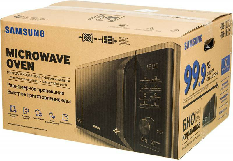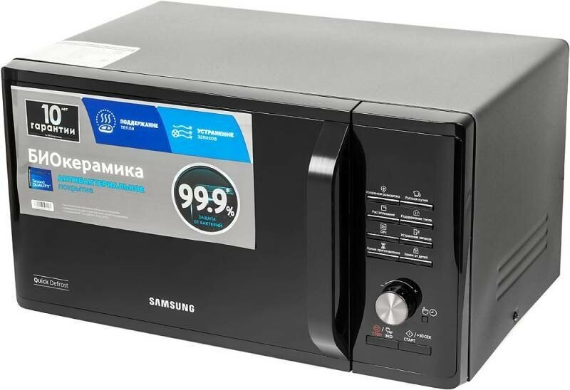 блокировка от детей, дисплей, кнопка +30 секунд, подсветка камеры, система равномерного распределения микроволн, 9 % защита от бактерий, БИОкерамика - 99, БИОкерамика - 99, 9 % защита от бактерий, автоменю (20 рецептов), быстрая разморозка (4 режима), С поворотным столом, Таймер, Часы, автоменю (20 рецептов), быстрая разморозка (4 режима), таймер